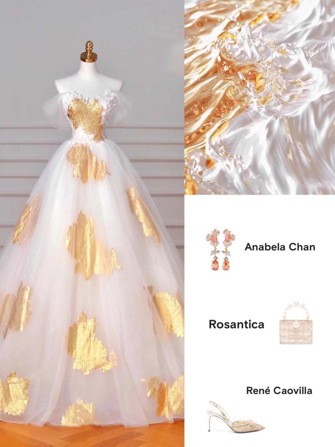 Gorgeous Gold Print Tulle Off The Shoulder Ball Gown,A Line Prom Dress Evening Dress Y8618