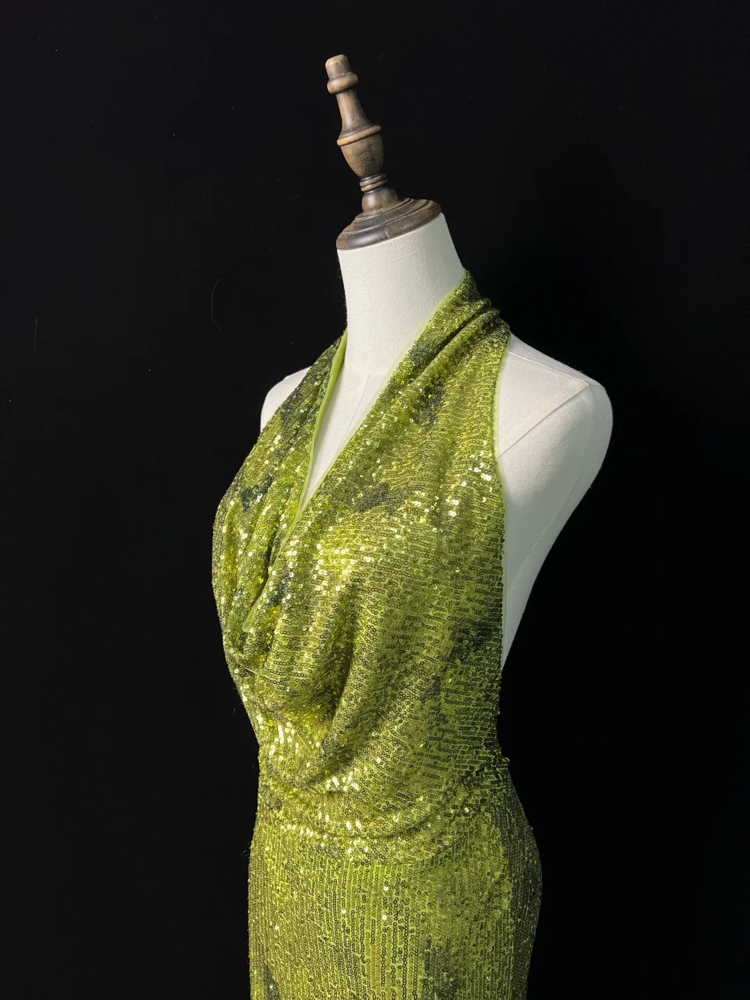 Gorgeous Green Halter Sequins Backless Prom Dress,Long Mermaid Evening Dress Y8647