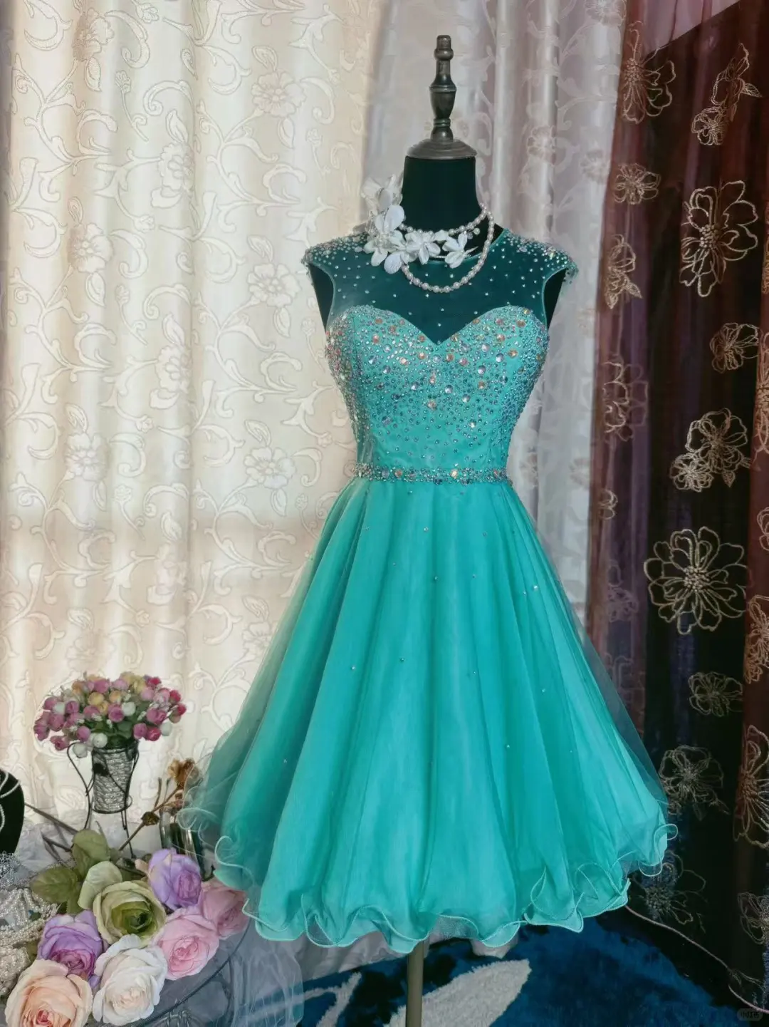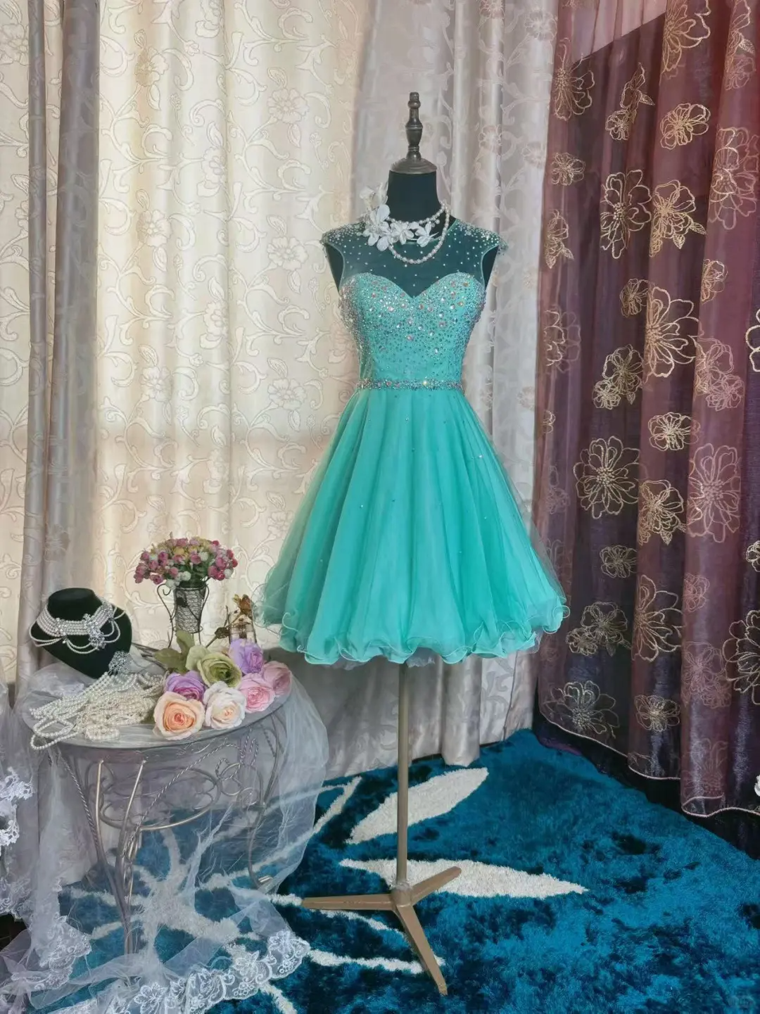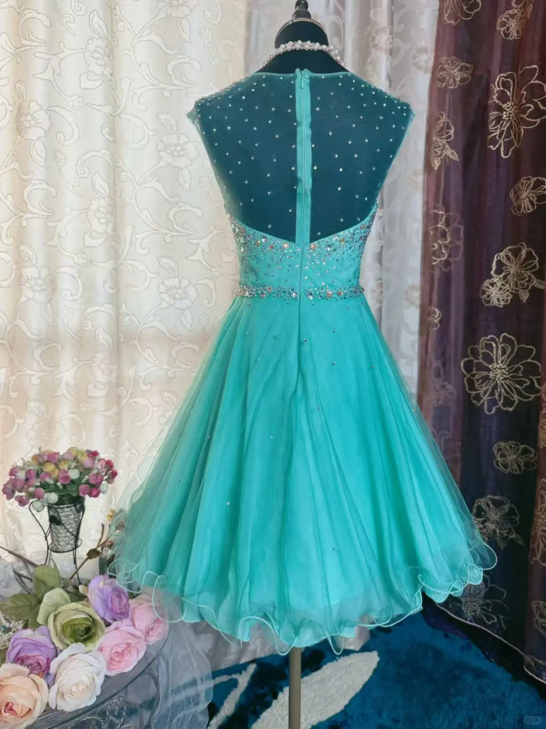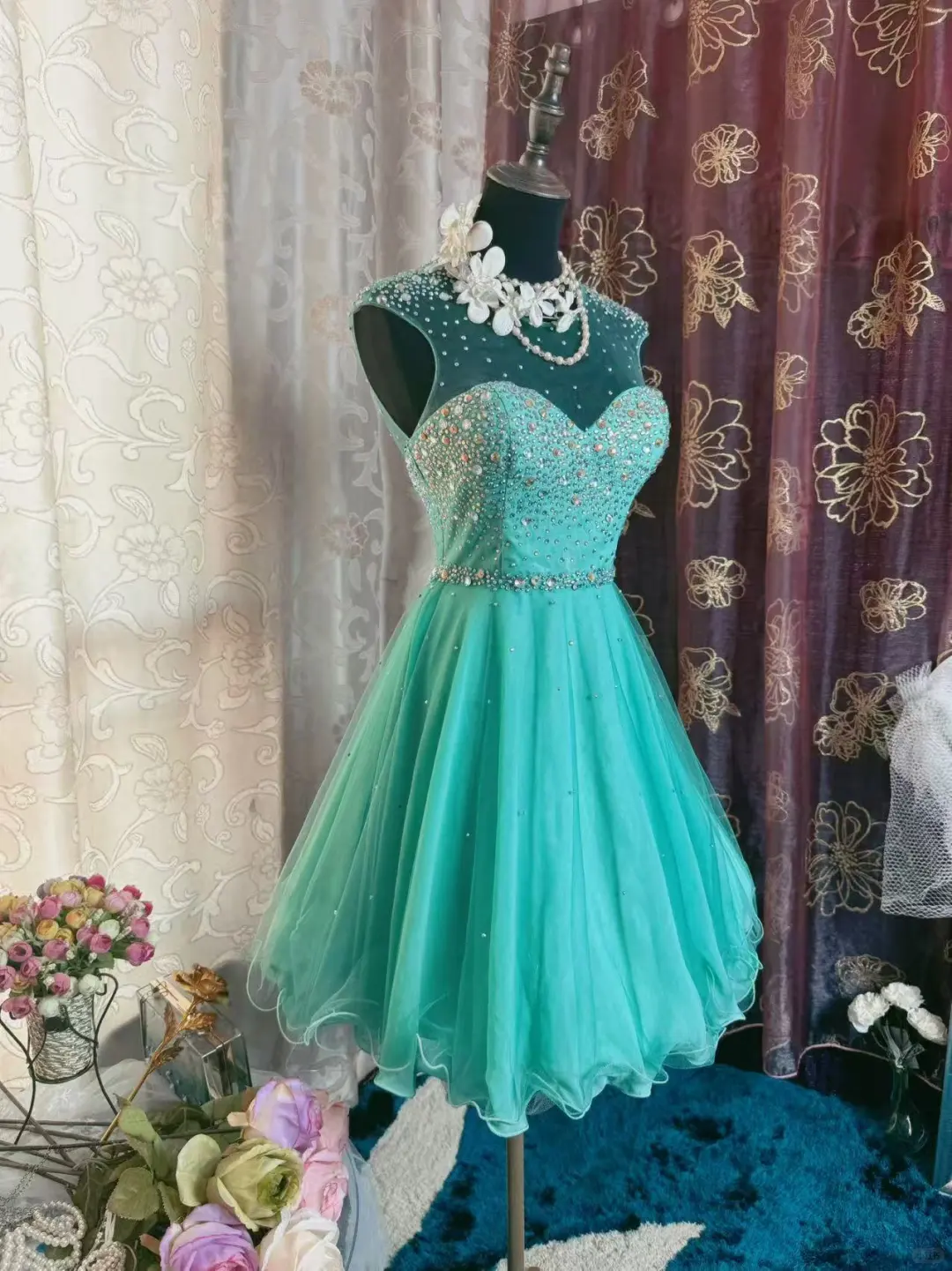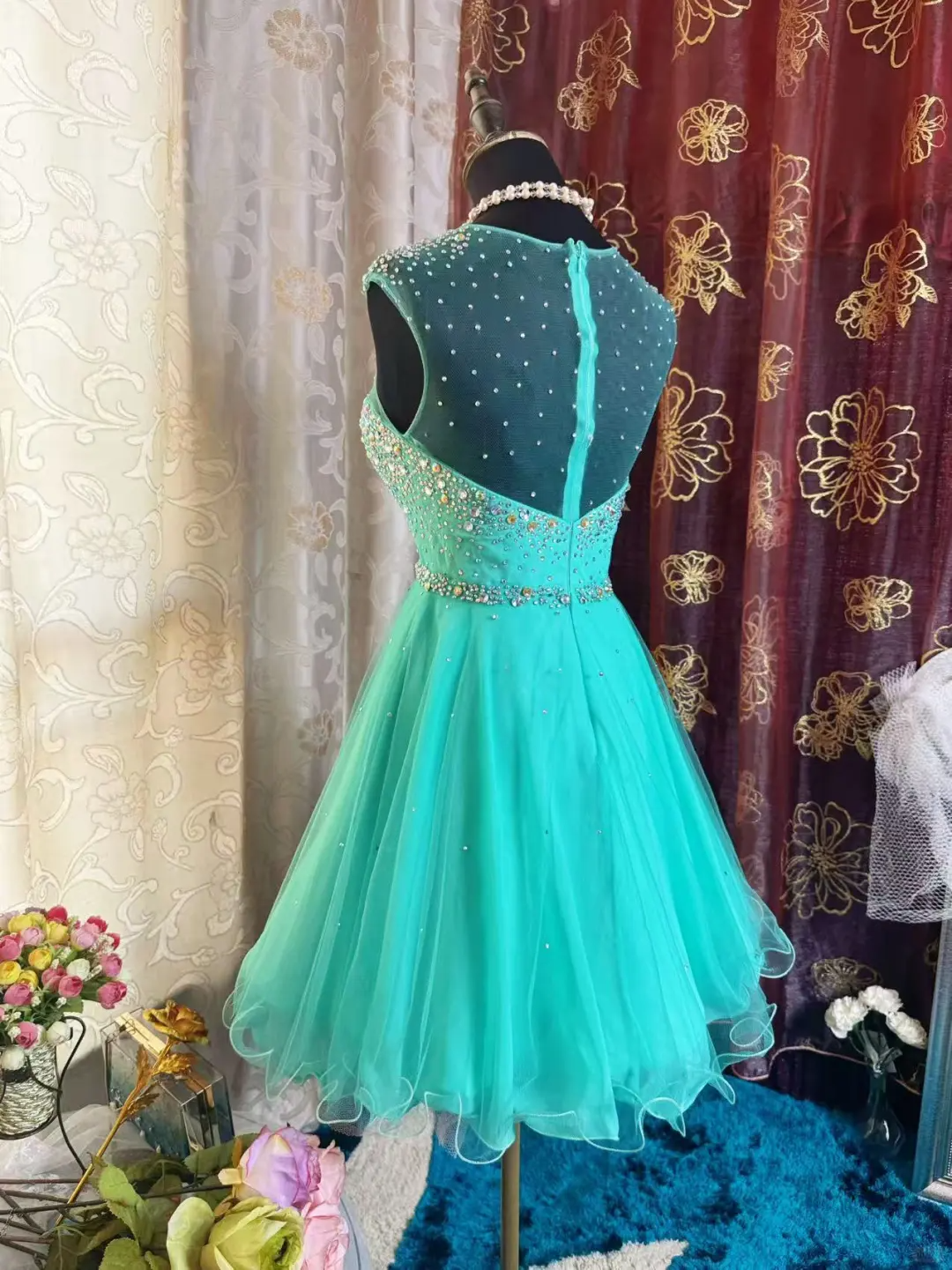 Gorgeous Green Tulle Beaded A Line Short Homecoming Dress Formal Birthday Outfits Y9471