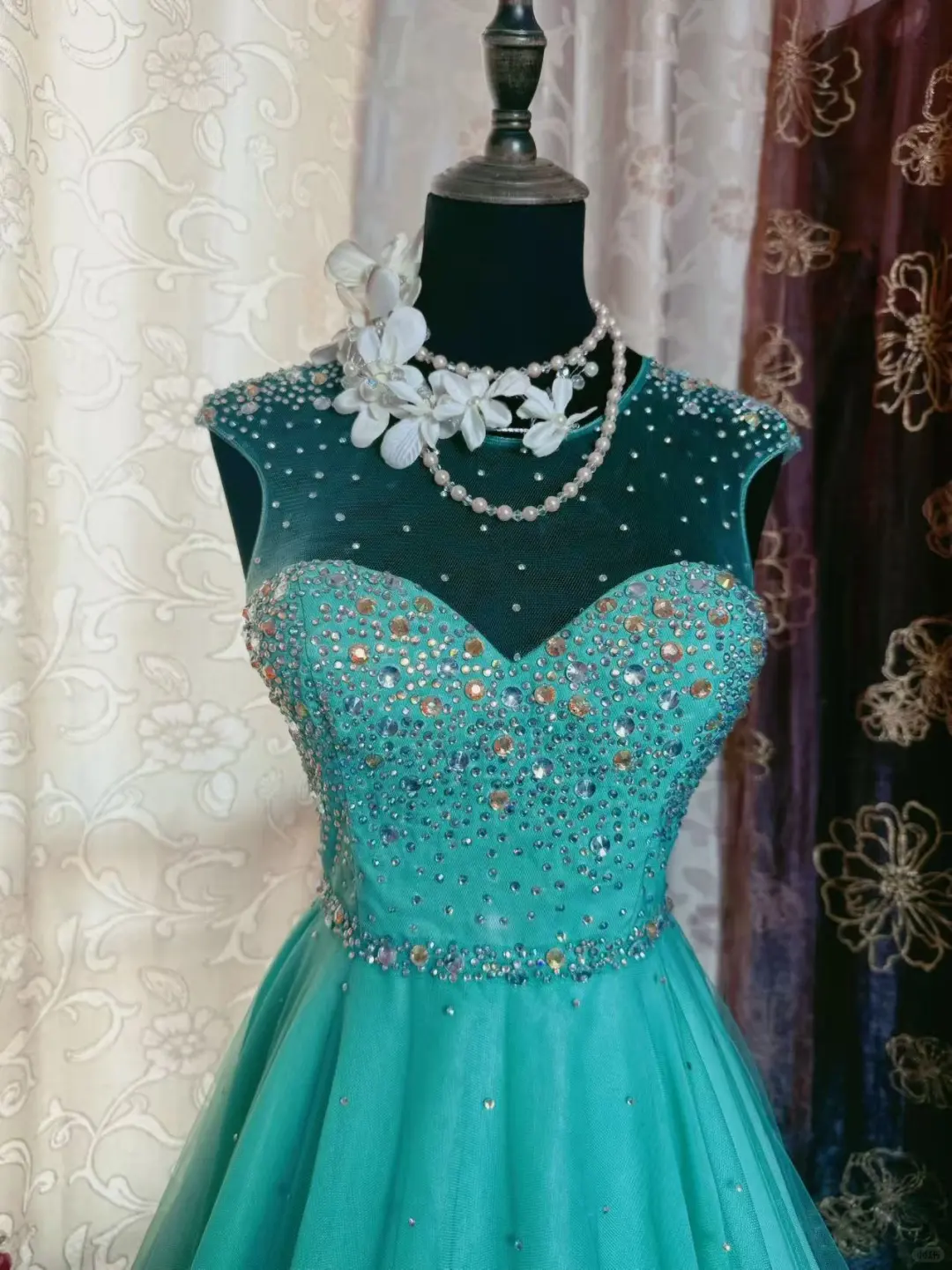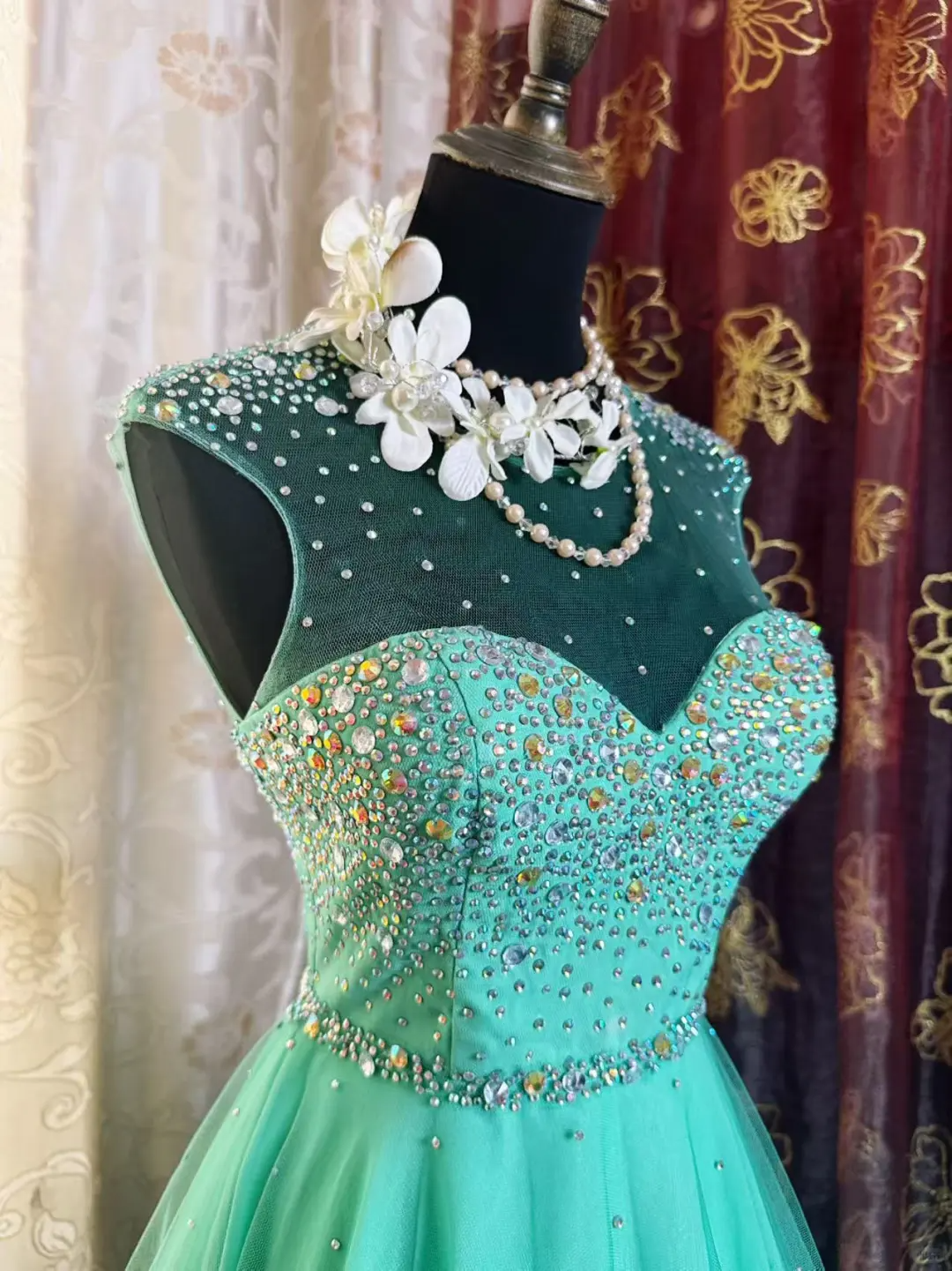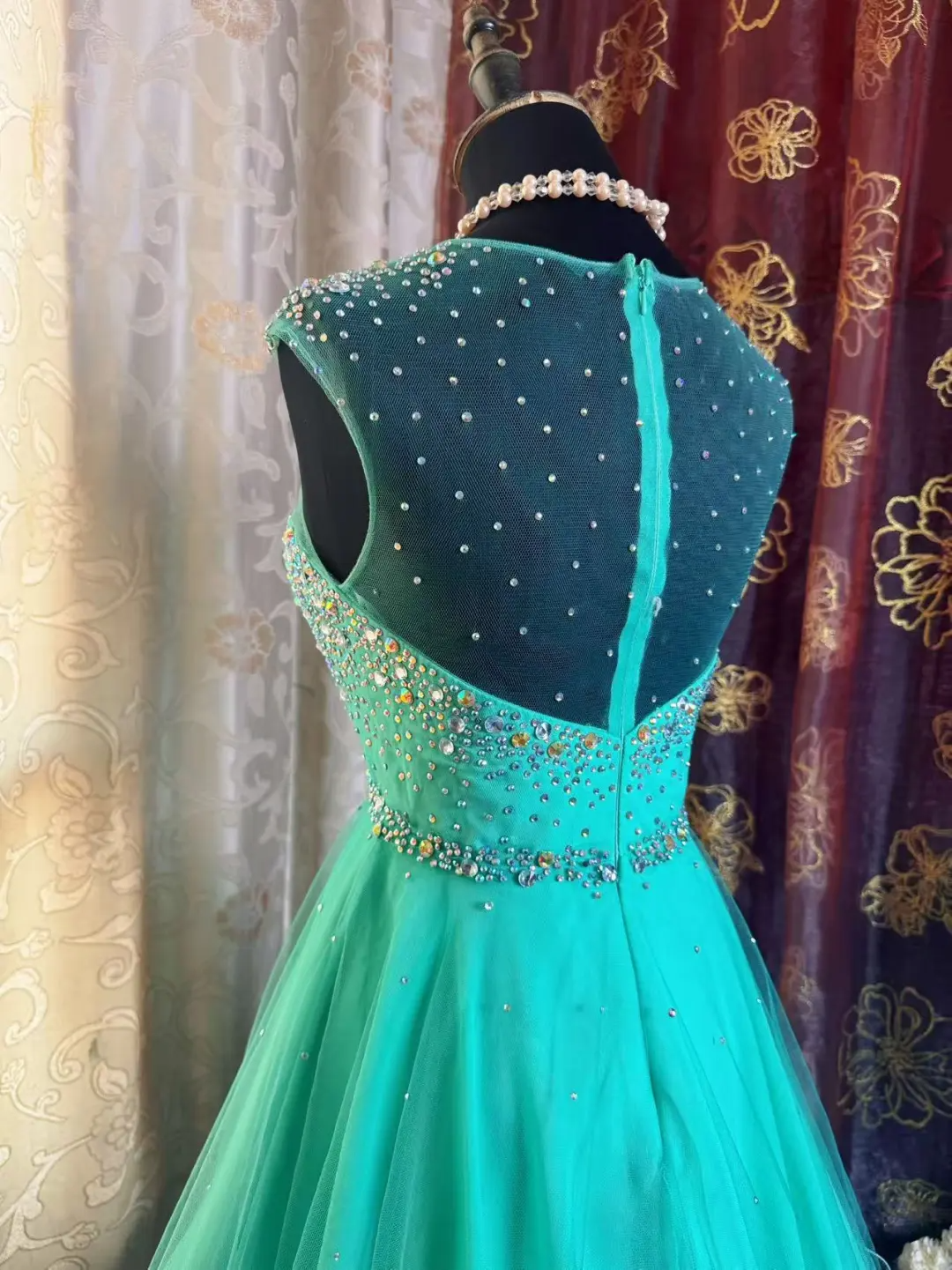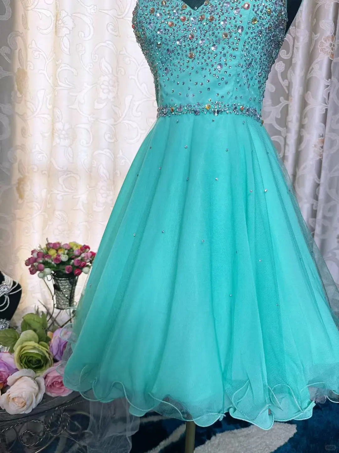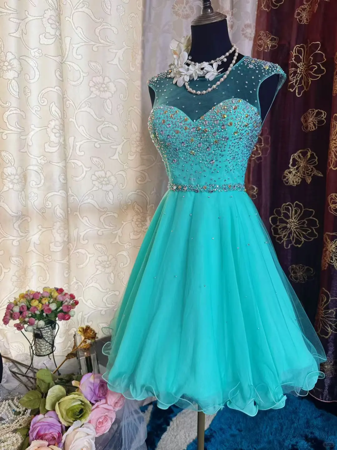 Gorgeous Green Tulle Beaded A Line Short Homecoming Dress Formal Birthday Outfits Y9471
