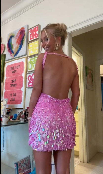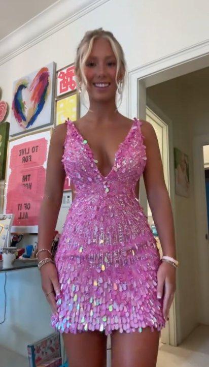 Gorgeous Hot Pink V Neck Sequin Backless Sheath Cocktail Dress Short Formal Homecoming Dress Y9280
