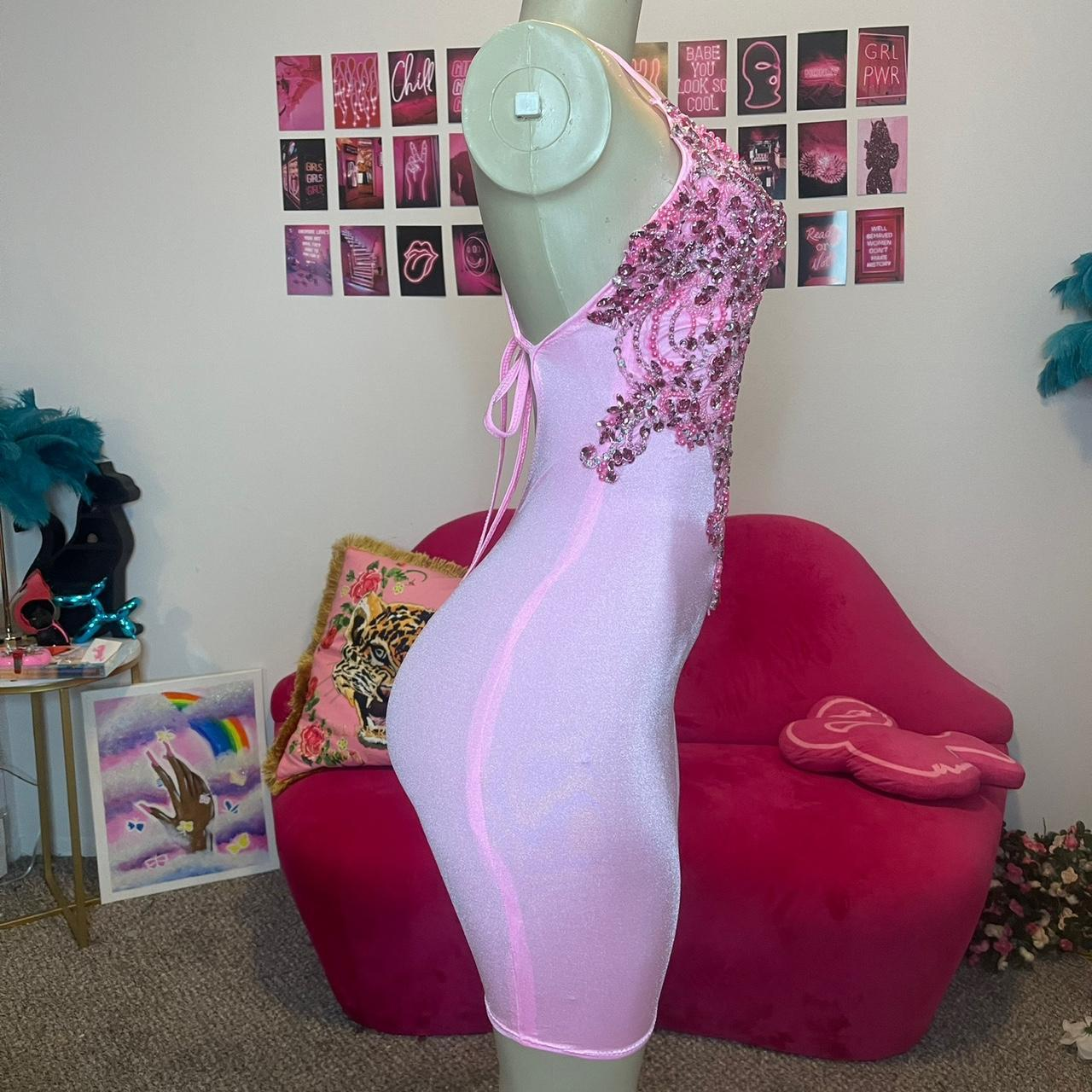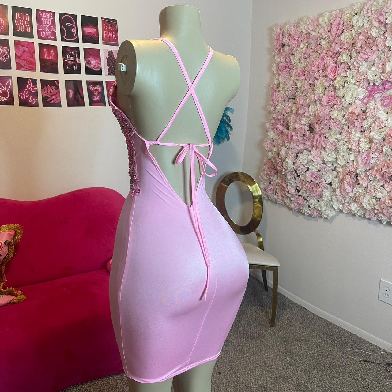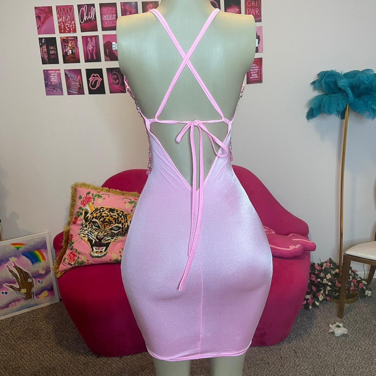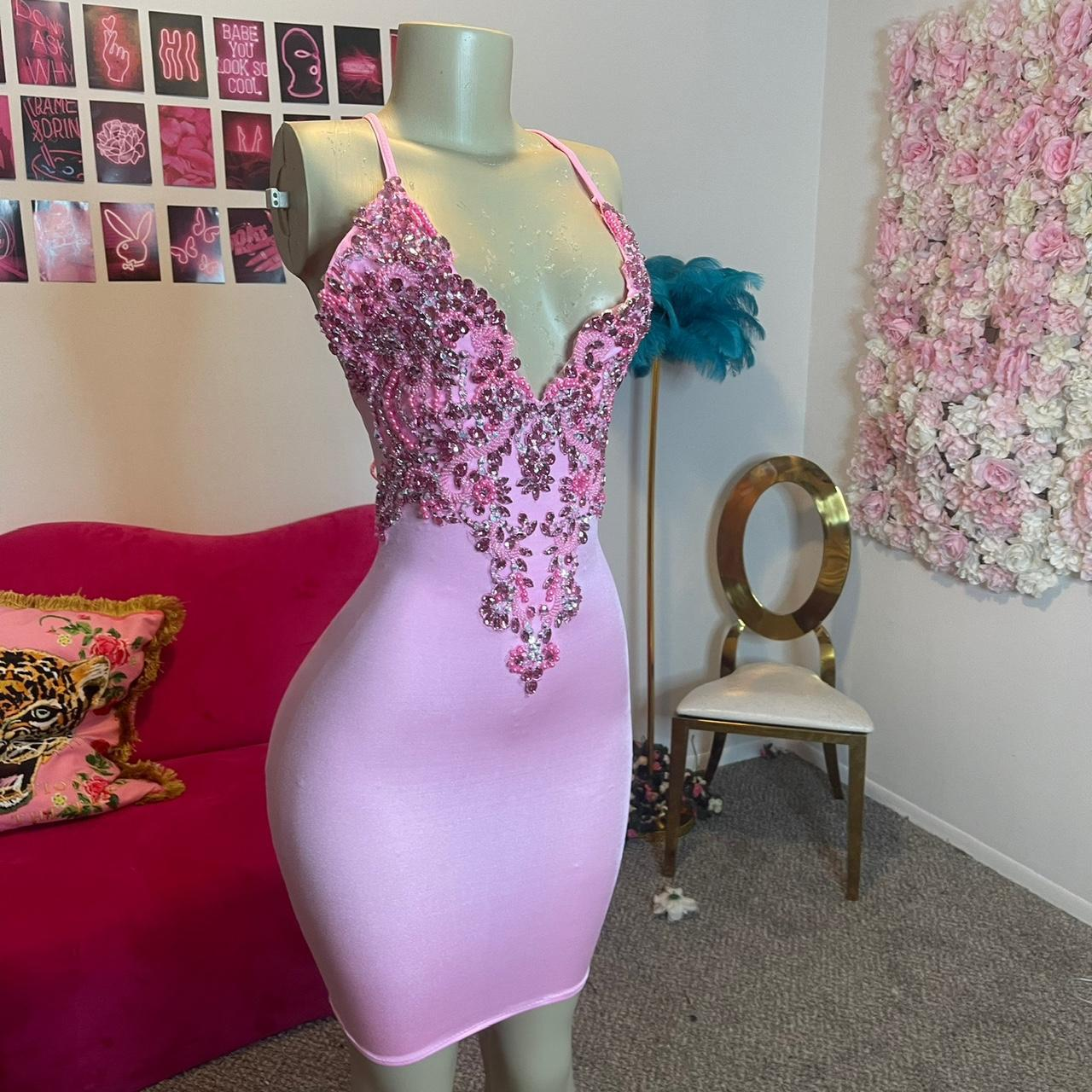 Gorgeous Pink V Neck Satin Appliques Beaded Sheath Cocktail Dress Short Homecoming Dress Birthday Outfits Y9165