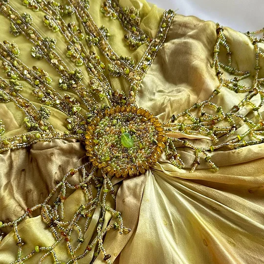 Gorgeous Spaghetti Straps Gold Satin Beaded Evening Dress Long Party Dress Y9735