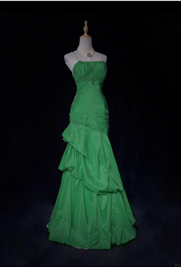 Gorgeous Spaghetti Straps Satin Pleated Beaded Evening Dress,Pink Mermaid Prom Dress Y8744