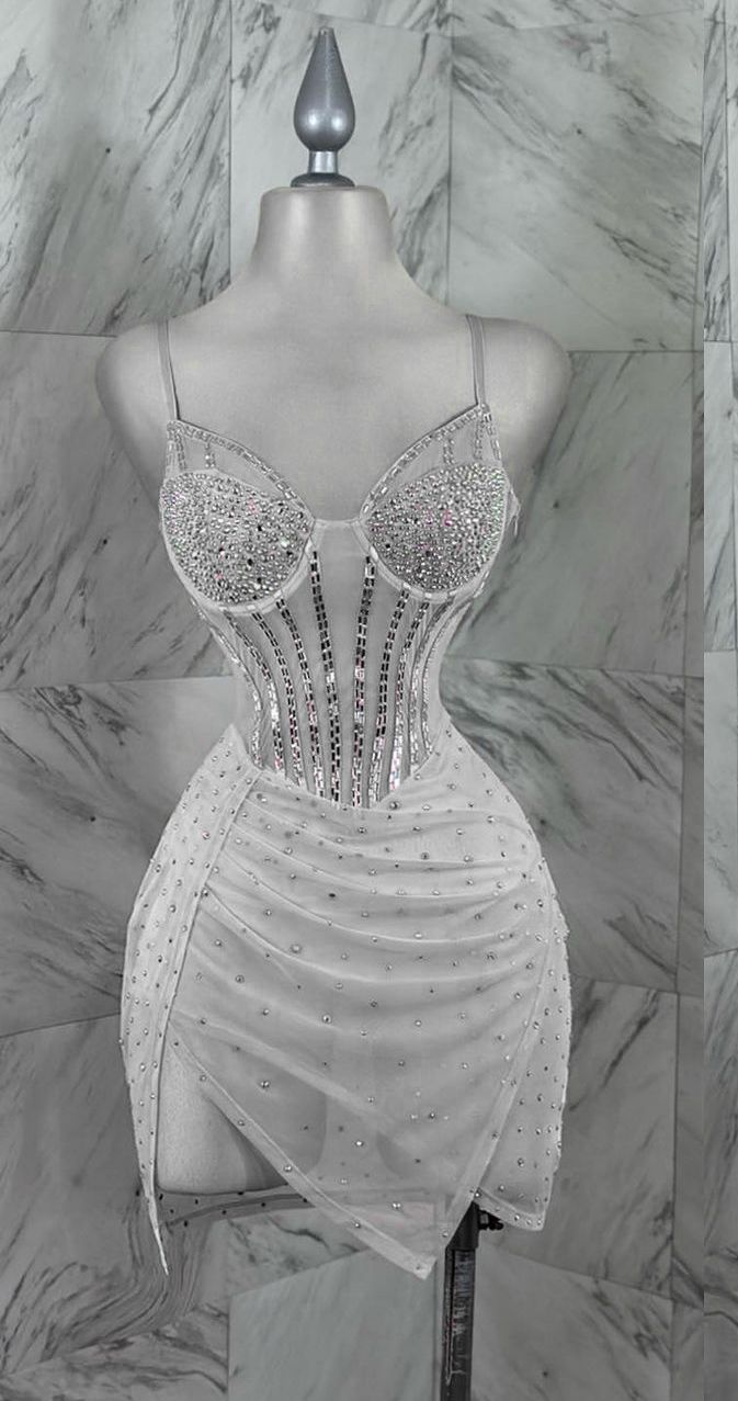Gorgeous Spaghetti Straps White Chiffon Sequin Sheath 7th Grade Homecoming Dress Sexy Cocktail Dress Y9163
