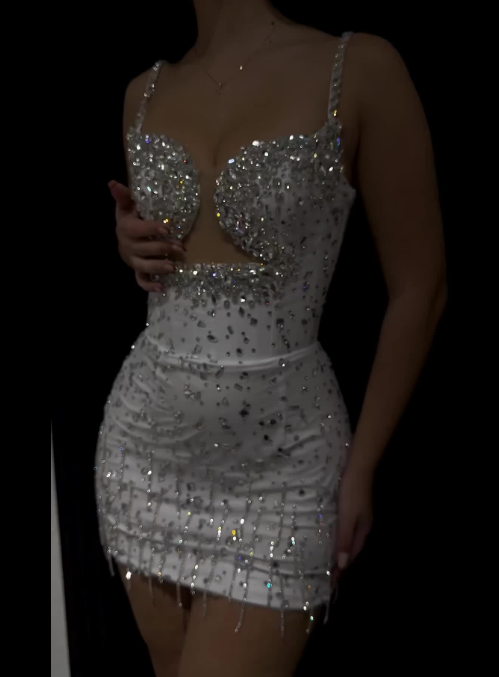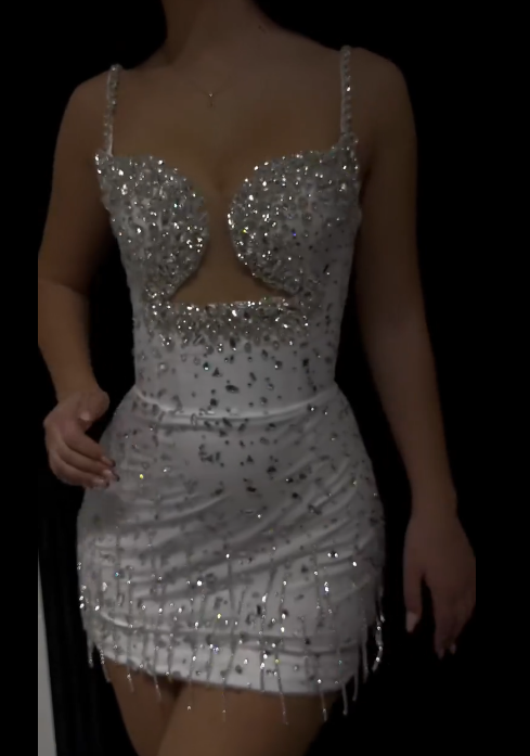 Gorgeous White Spaghetti Straps Satin Beaded Sheath Cocktail Dress Short Graduation Homecoming Dress Y9264