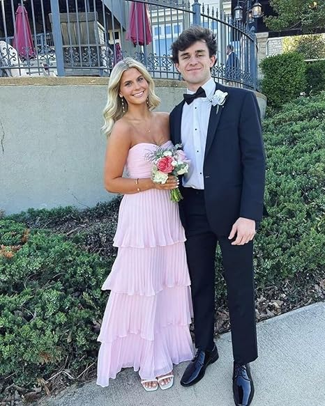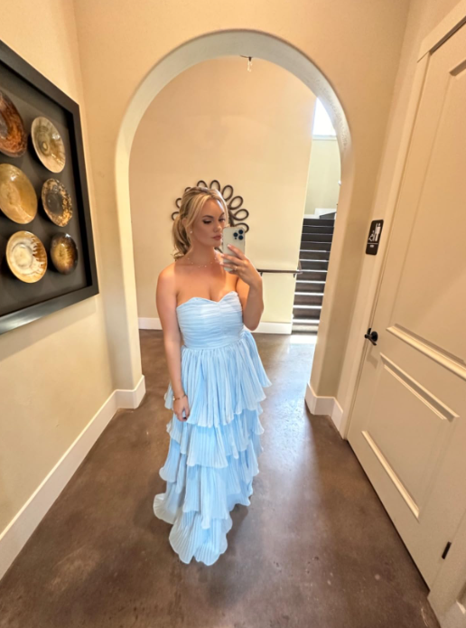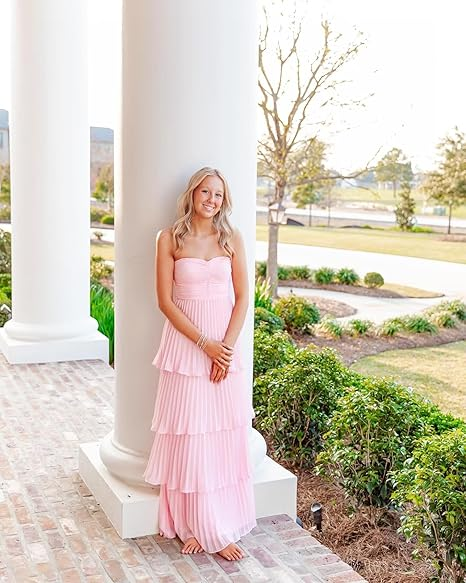 Green Strapless Ruffle Multi-Layer Long Prom Dress Y7373