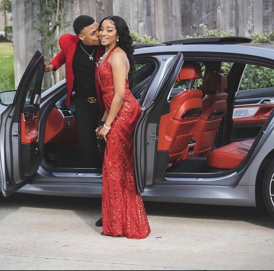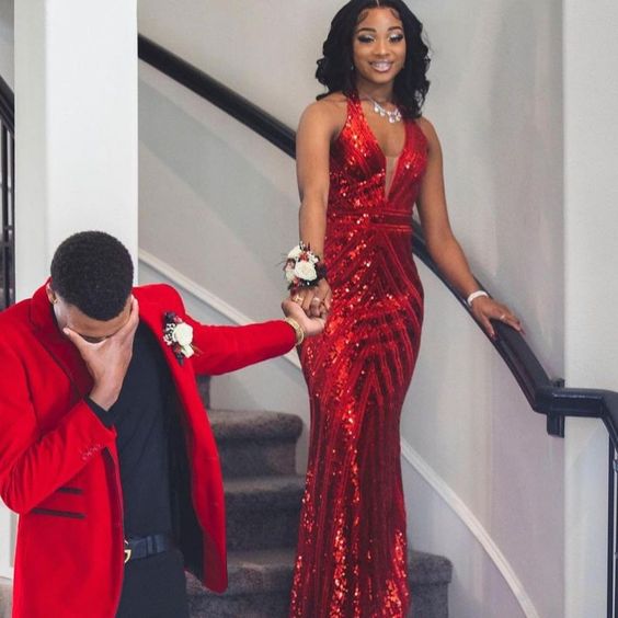 Halter Neckline Mermaid Red Prom Dress Charming Formal Gown For Black Girls Y662