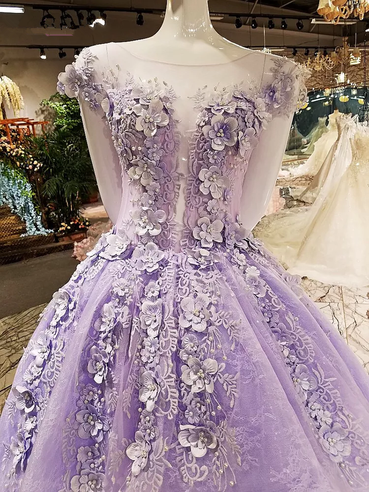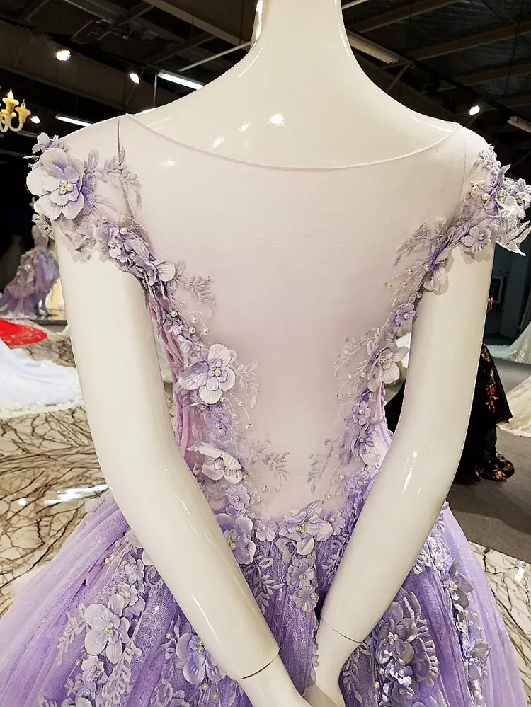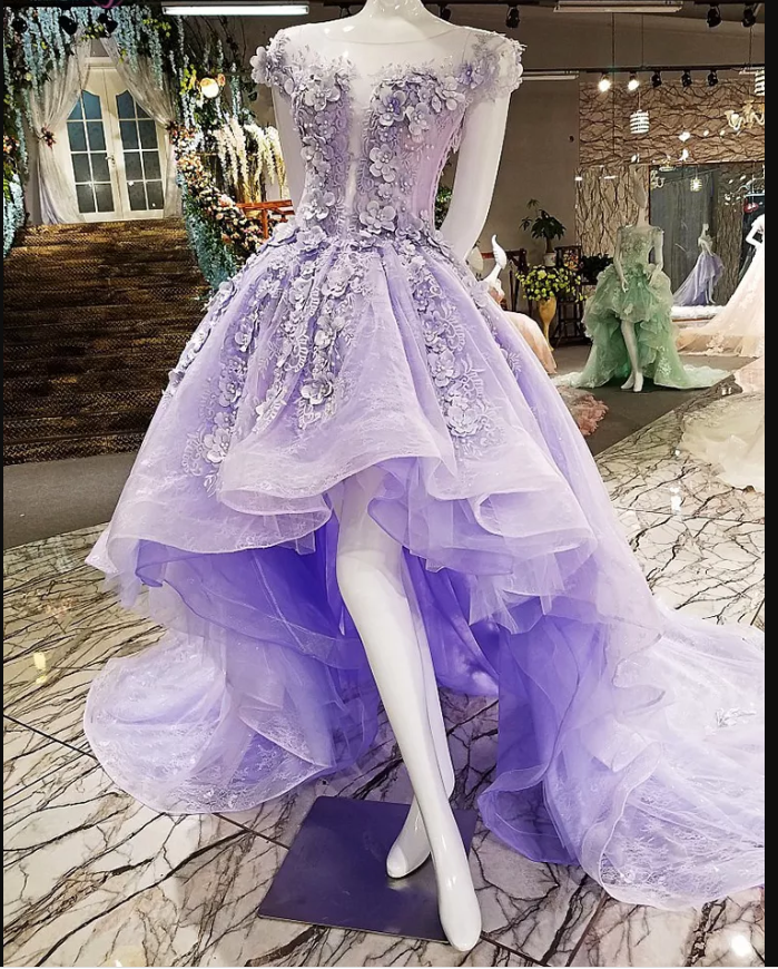 Hi-low Party Dress Lace Appliques Purple Prom Dress Y1077
