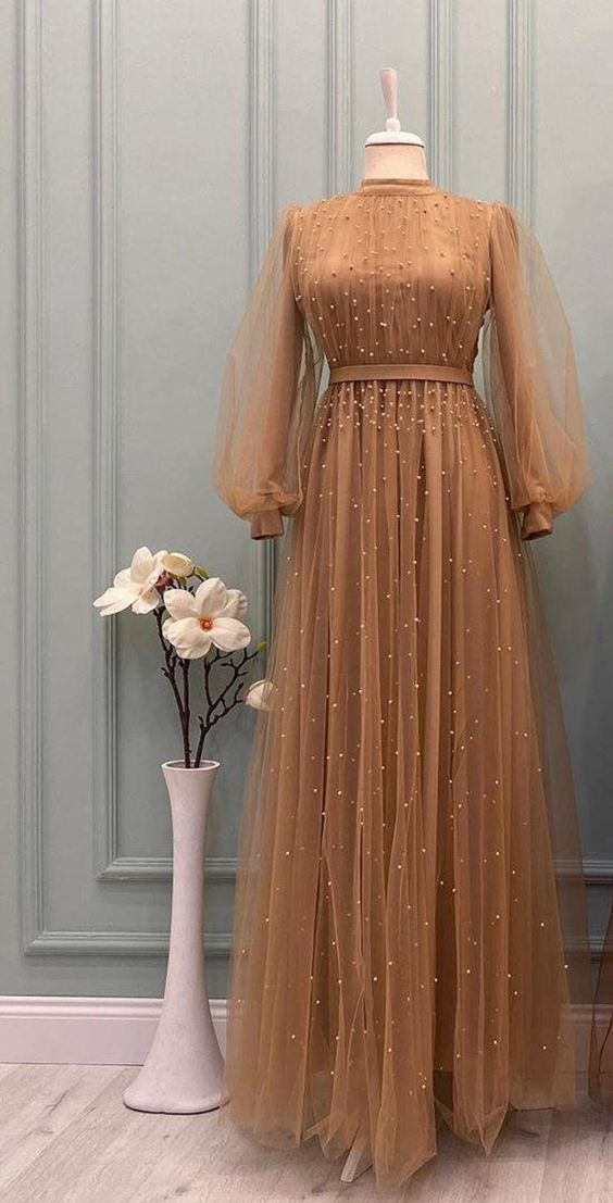 Modest A-line Tulle Prom Dress,Muslim Dress Y6988