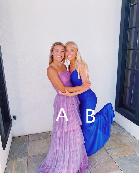 New Arrival Purple Tiered Tulle Prom Dress/Royal Blue Formal Gown Y963