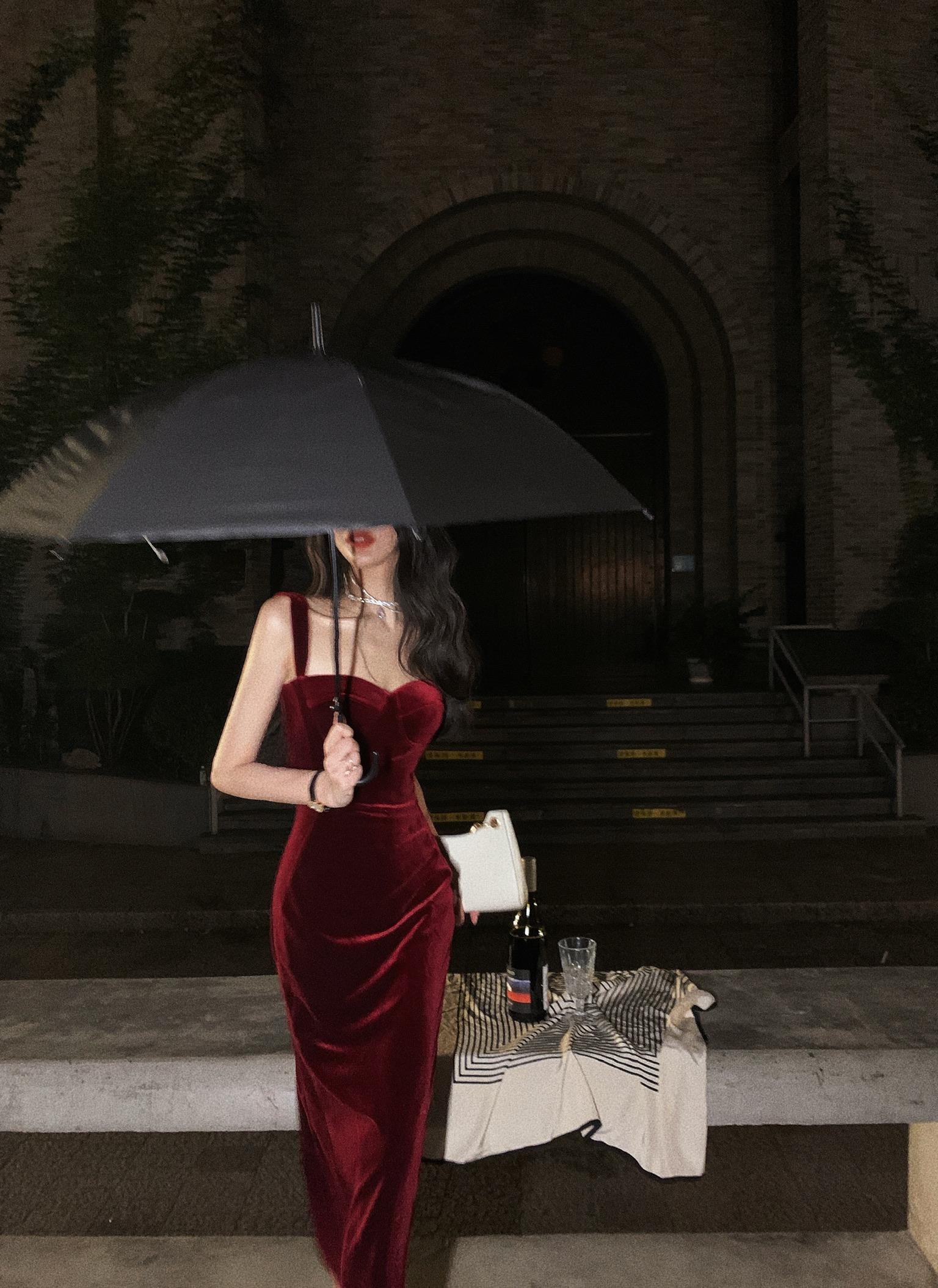 New Summer Women Vintage Sleeveless Velvet Dress Female Spaghetti Strap Sexy Bodycon Dress Ladies Elegant Evening Dress Y1654