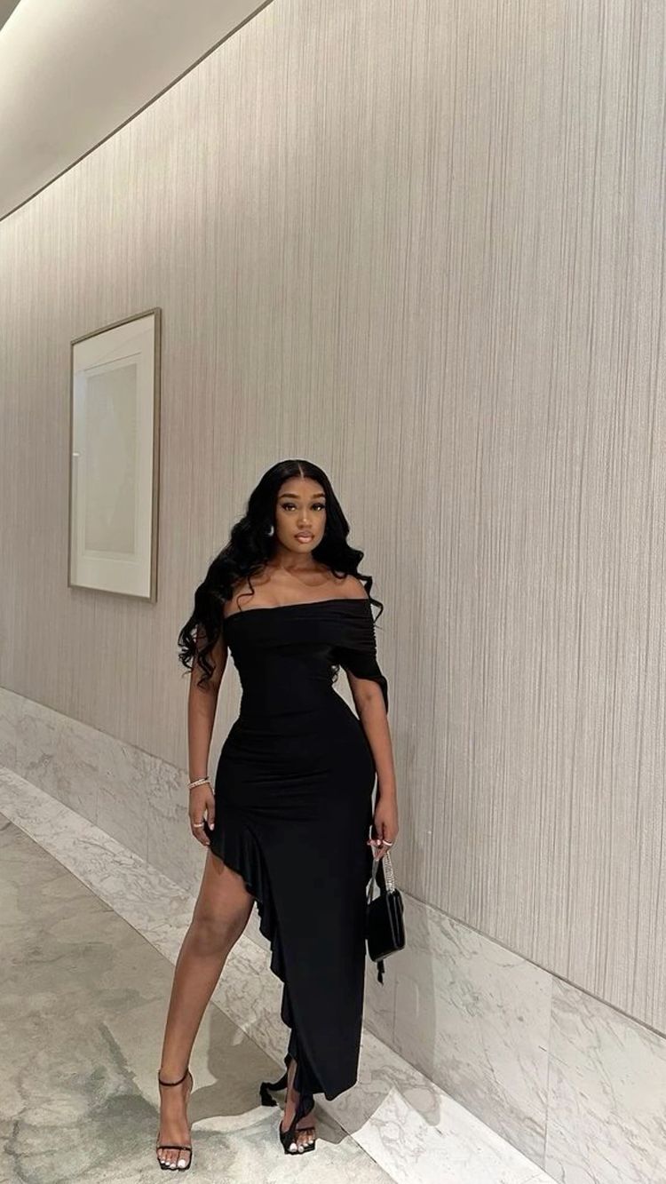 One Shoulder Black Evening Dress,Chic Black Maxi Dress Y1892