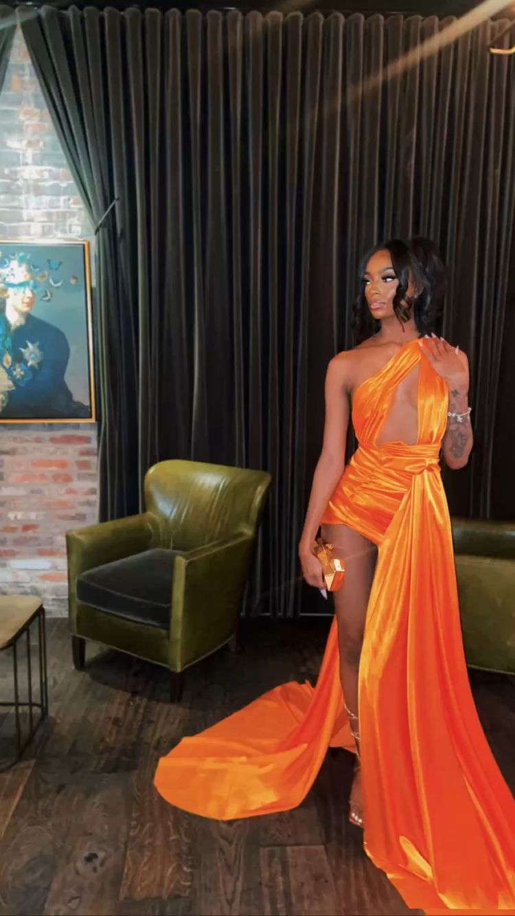 Orange Sleeveless Satin Sexy Party Dress ,21th Birthday Outfit Dress, Sexy Evening Dress Y782