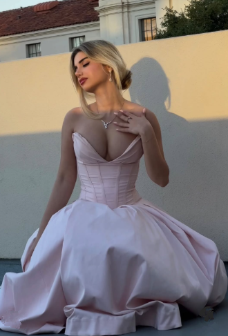 Pink Strapless A Line Long Prom Dress Elegant Evening Dress Brithday Outfits Y7531