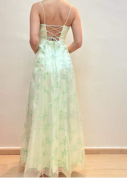 Pretty Green Spaghetti Straps Tulle Sequins A Line Party Prom Dress Y8141