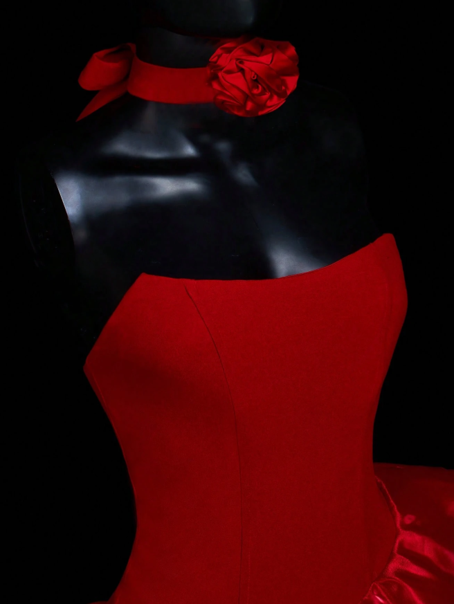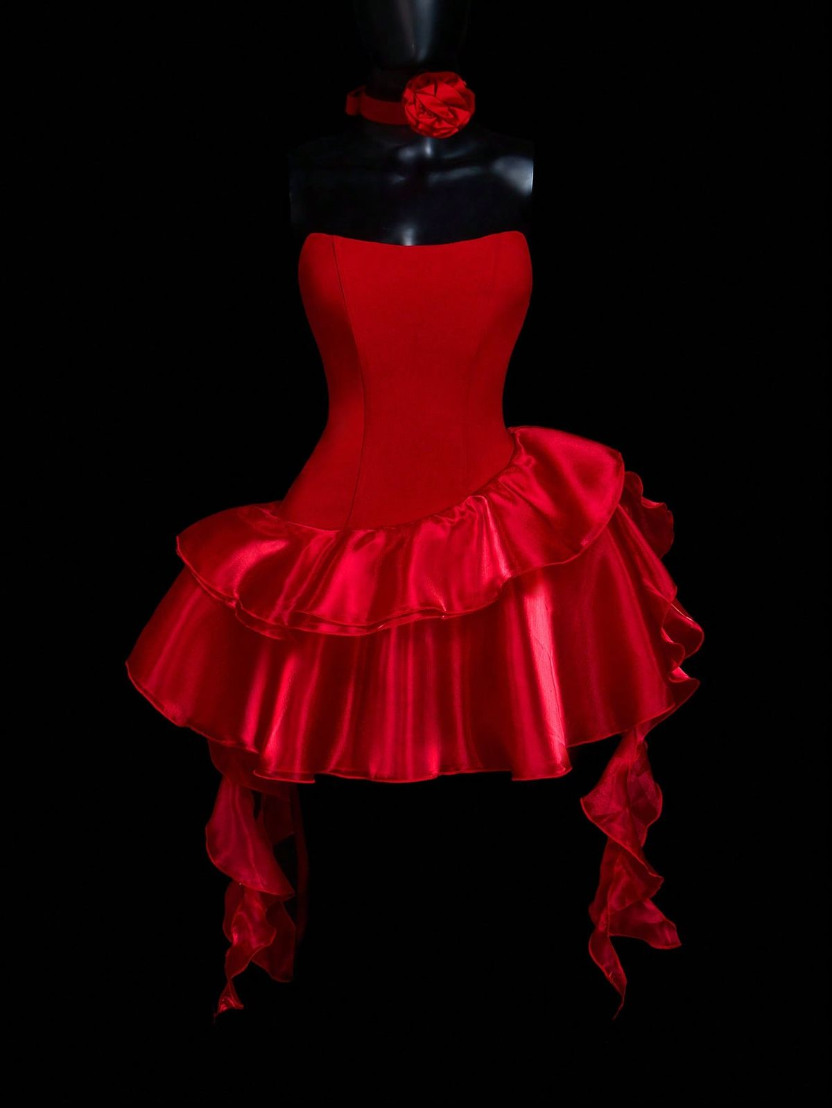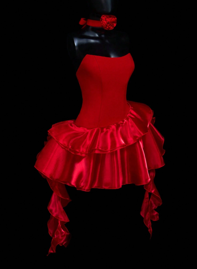 Pretty Red Strapless Satin Ruffles A Line Short Graduation Homecoming Dress Birthday Outfits Y9164