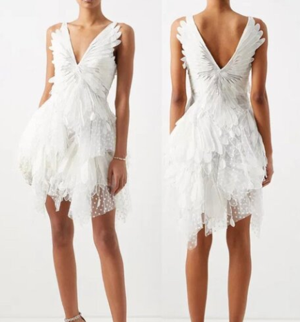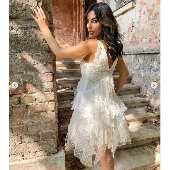 Pretty V Neck 3D Ruffled Appliquéd Tulle Asymmetrical White 21st Birthday Dress Short Homecoming Dress Y9900