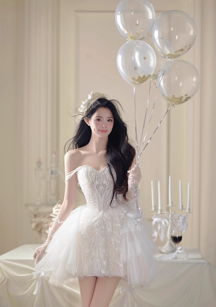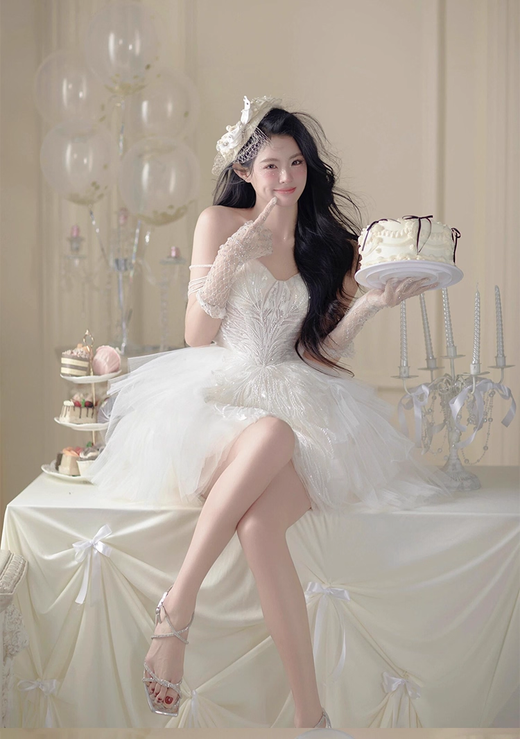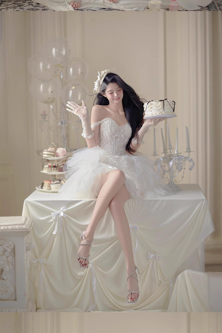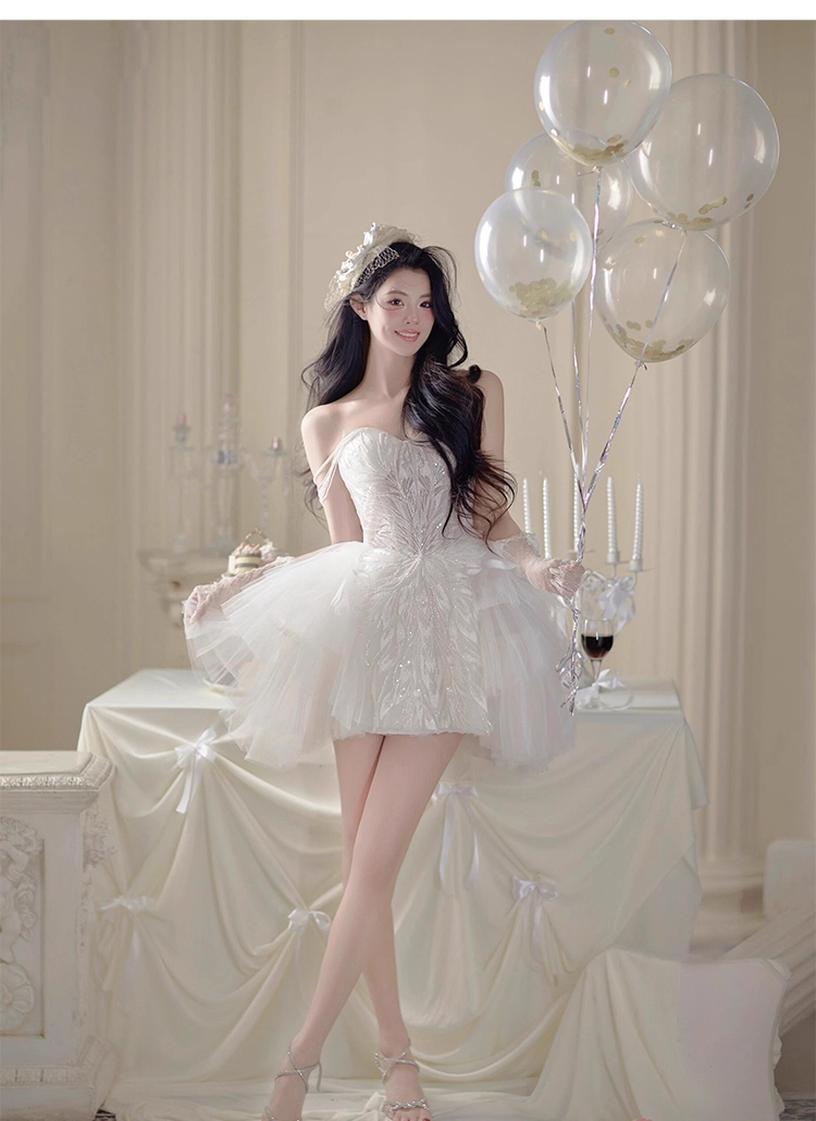 Pretty White Tulle Lace Short Formal 18th Birthday Outfits Homecoming Dress With Gloves Y9364