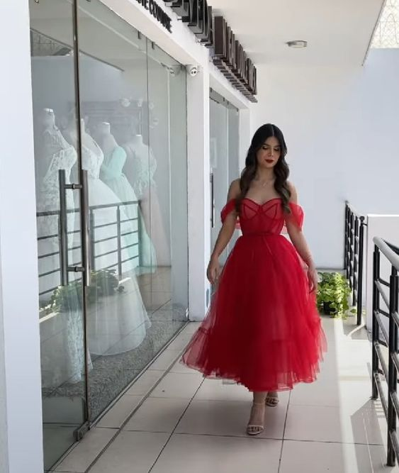 Red A-line Tulle Prom Dress,Red Birthday Party Dress Y6279