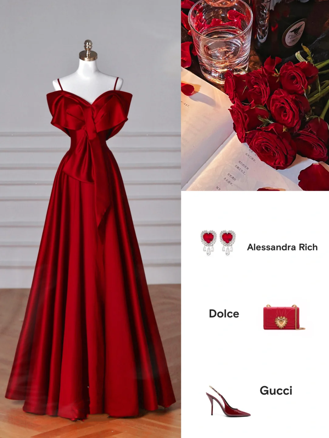 Red Satin Off The Shoulder Prom Dress,Bow A Line Evening Dress Y8626
