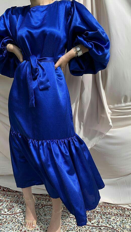 Royal Blue Lantern Sleeves Evening Dress,Simple Party Dress Y5513