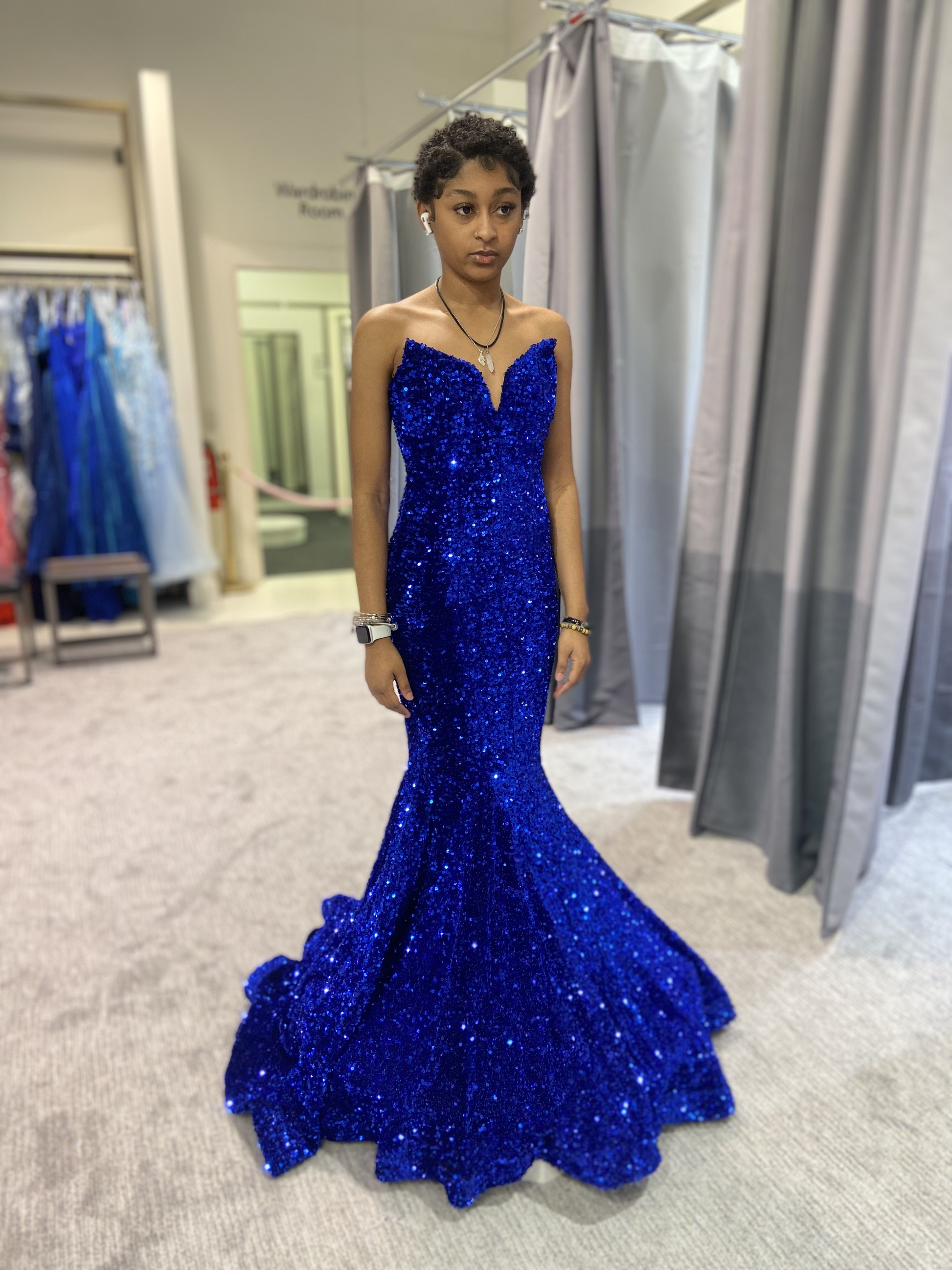 Royal Blue Sequin Strapless Trumpet Long Prom Dress Y5919