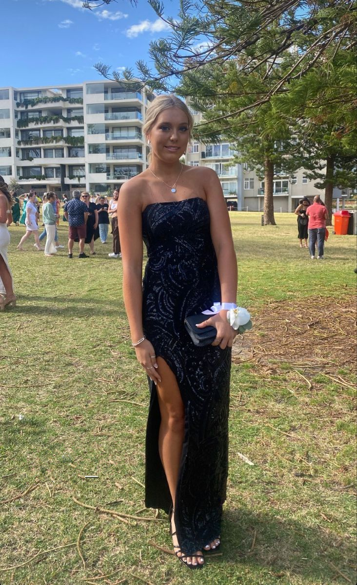 Sequin Sparkling Sheath/Column Navy Blue Prom Dress with Split Y4181