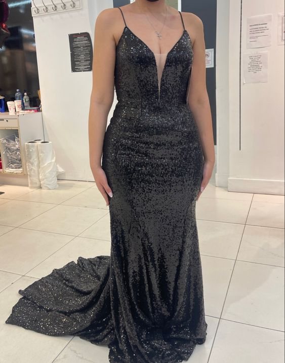 Sexy Black Sequins Mermaid V Neck Long Prom Dress,Formal Dress Y1500