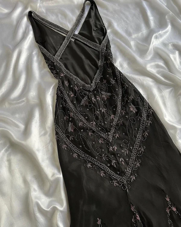 Sexy Mermaid Black Straps Chiffon Beaded Long Prom Dress Backless Formal Evening Dress Y7730
