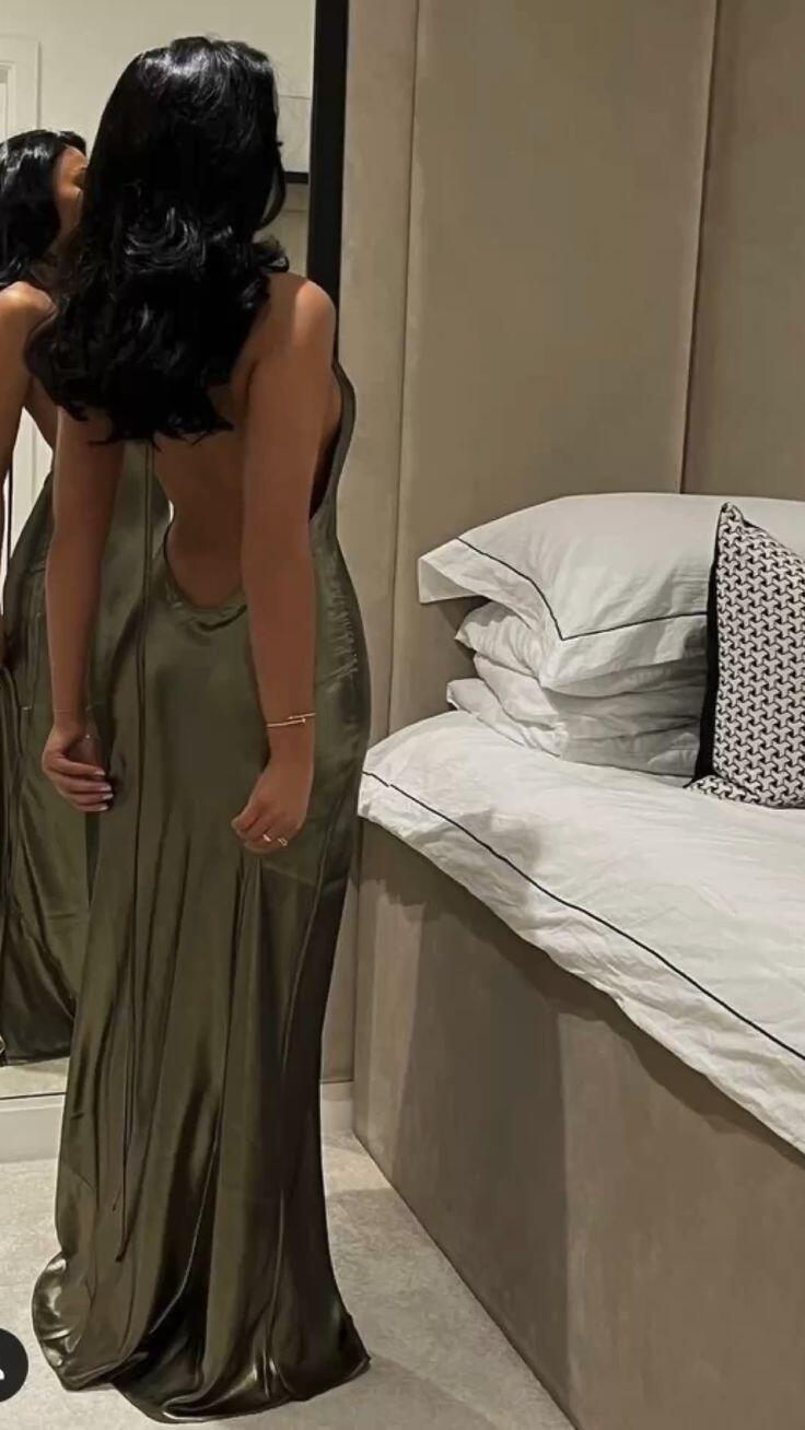 Sexy Olive Green Backless Evening Dress,Olive Green Gala Dress Y7400