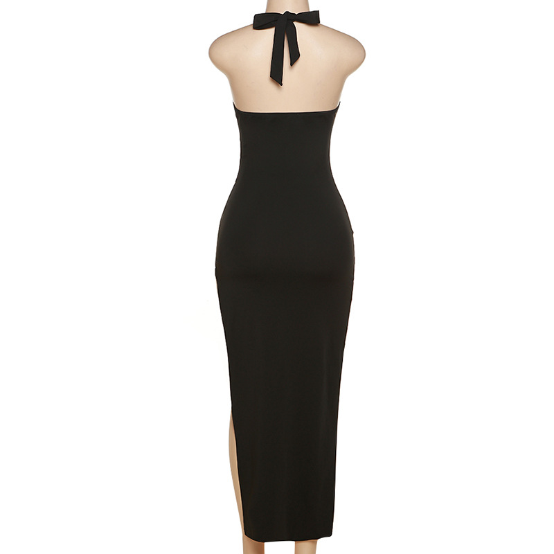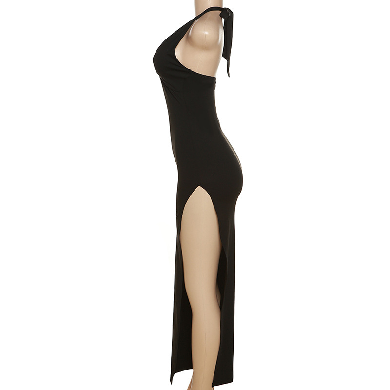 Sexy Open Back Deep V Neck Slit Maxi Dresses Women 2023 Elegant Party Wear Black White Summer Dress Long Party Dress Y1463