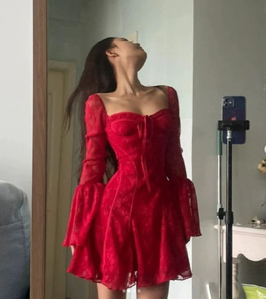 Sexy Red Lace Trumpet Sleeves Homecoming Dress Party Dress Y7655