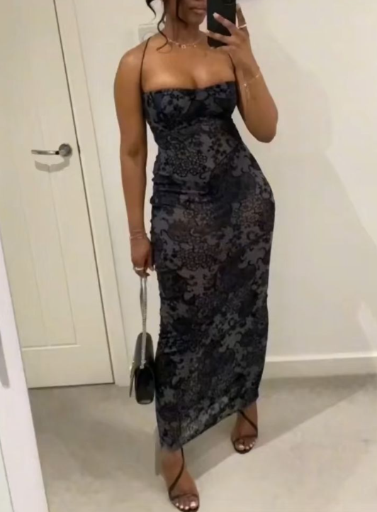 Sexy Spaghetti Straps Black Lace Sheath Long Prom Dress Birthday Party Gown SP580