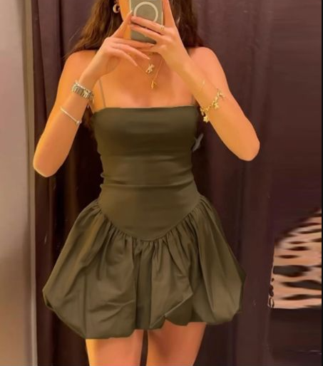 Sexy Spaghetti Straps Olive Green Satin A Line Short Homecoming Dress Cocktail Dress Y9082