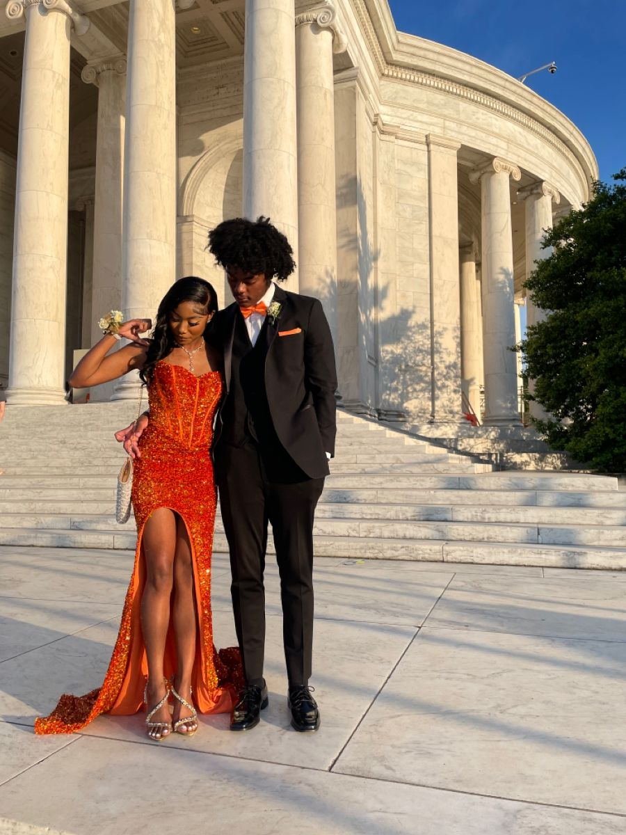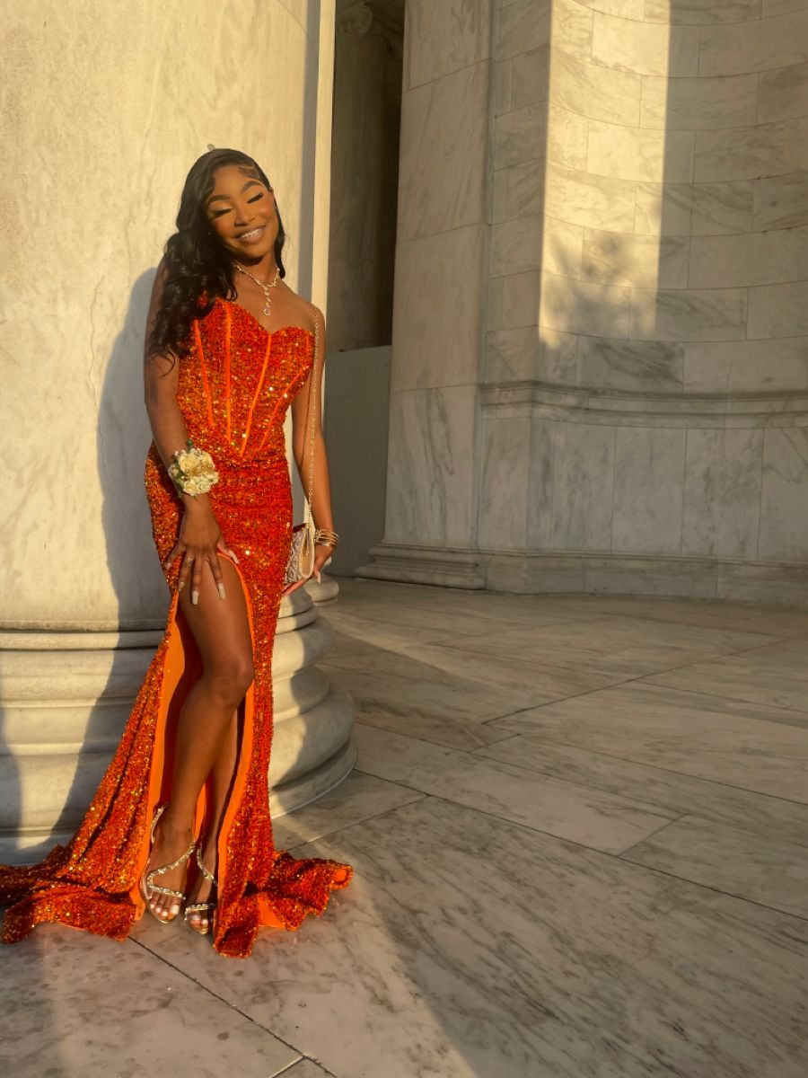 Shiny Orange Sequins Mermaid Prom Dress For Black Girls Y5120