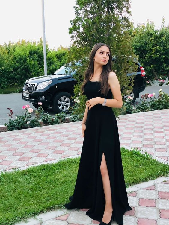 Simple Black A-line Prom Dress Side Split,Black Senior School Dress Y5861