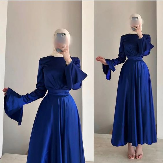 Simple Royal Blue A-line Prom Dress,Royal Blue Muslim Dress Y6982