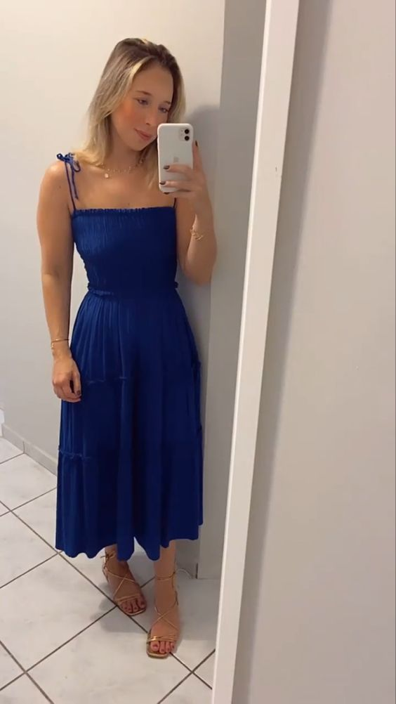 Simple Royal Blue A-line Spaghetti Straps Prom Dress,Party Dress Y6839