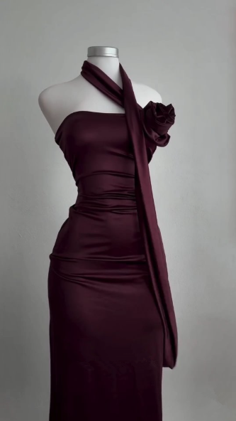 Simple Sheath Burgundy Long Prom Dress Strapless Evening Dress Y8511
