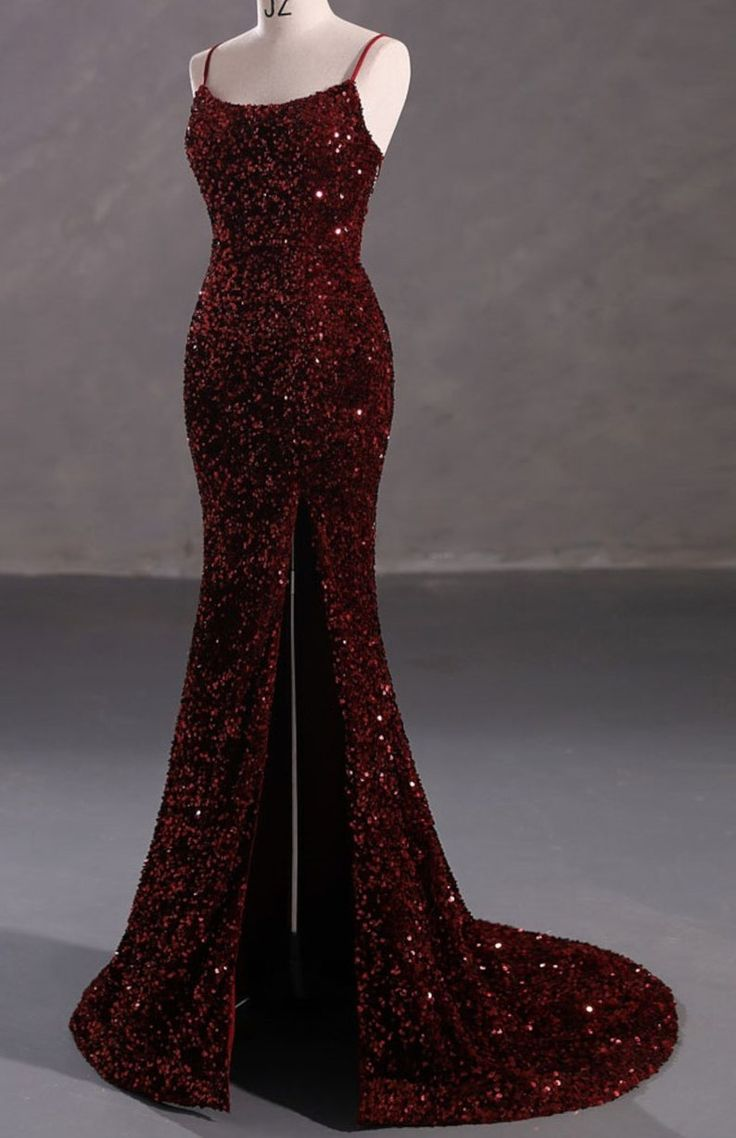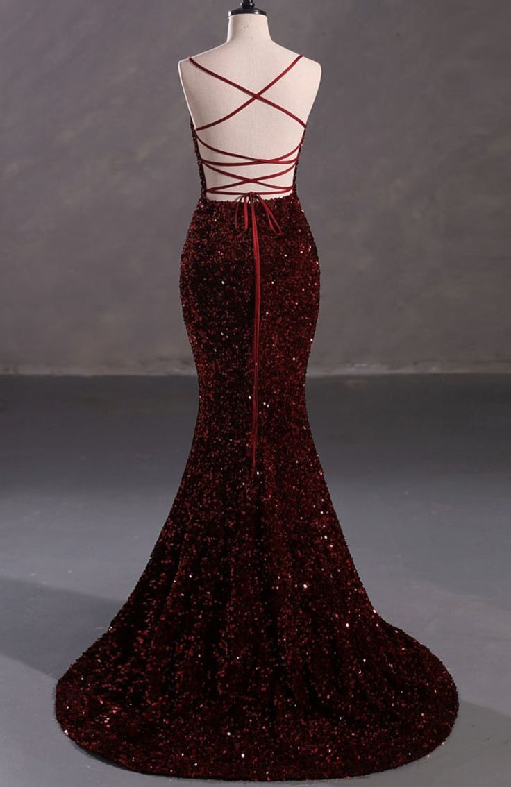 Slim Burgundy Shimmery Open Back Formal Prom Evening Dress Y4164