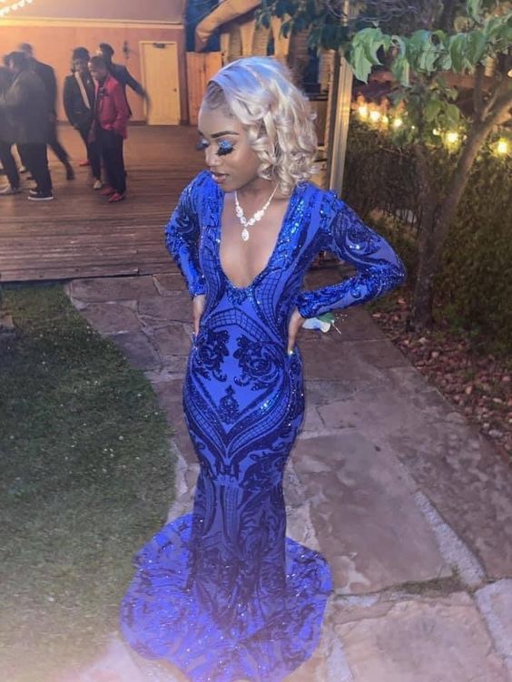 Sparkle Royal Blue Sequin Long Sleeves Mermaid Evening Dresses Y1663