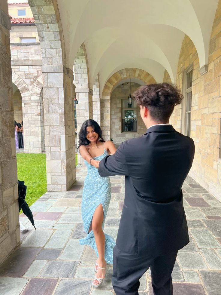 Sparkly Blue Sequins Prom Dress With Slit,Blue Prom Gown Y5429