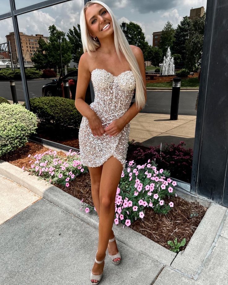Sparkly Bodycon Sweetheart Silver Sequins Short Homecoming Dresses Y1912