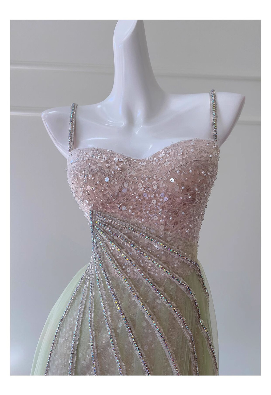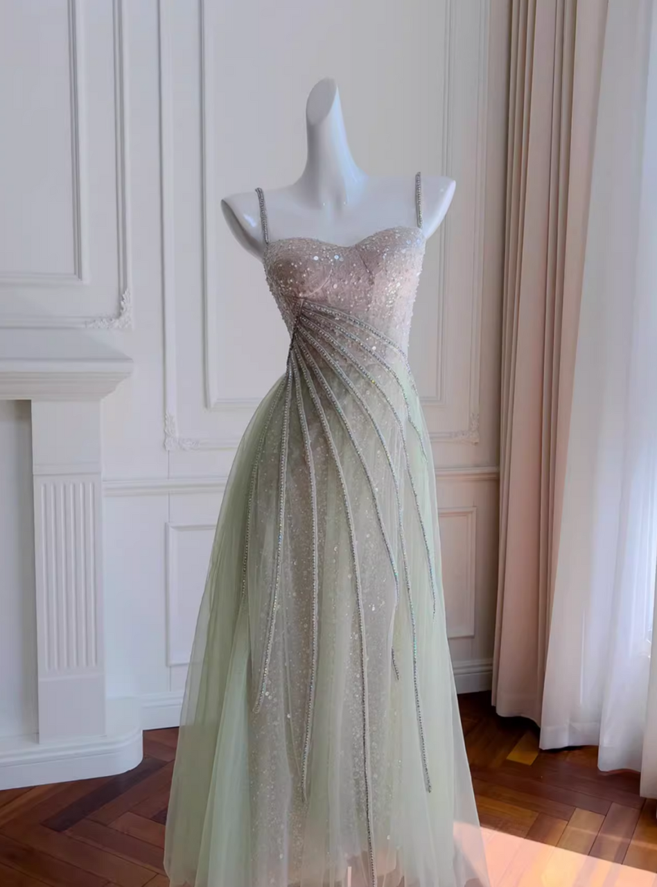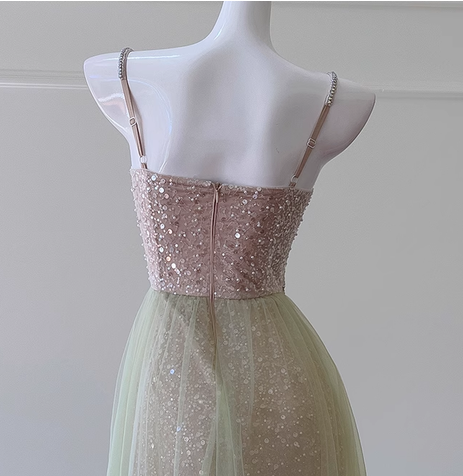 Sparkly Light Green Tulle Sequins Spaghetti Straps Homecoming Dress Y8825