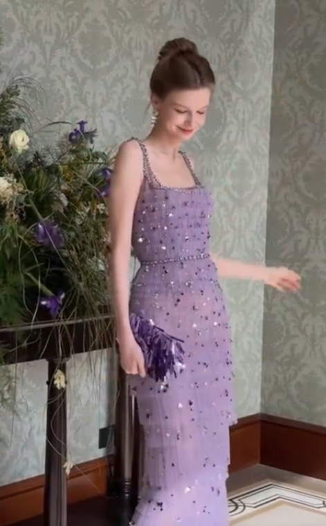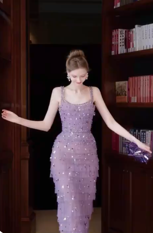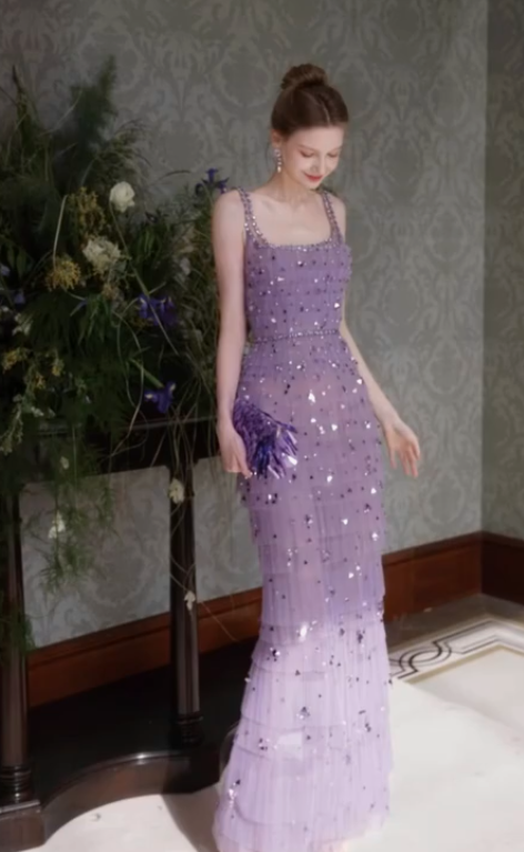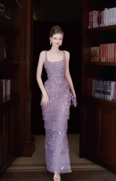 Sparkly Lilac Sequins Evening Dress,Long Tulle Layered Prom Dress Y8763