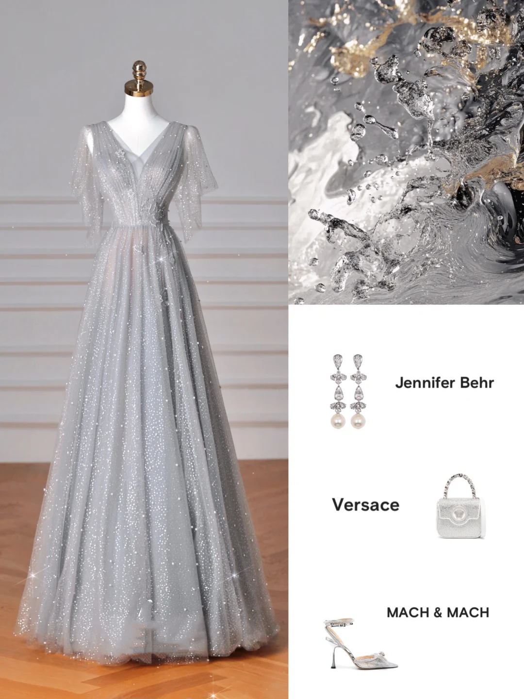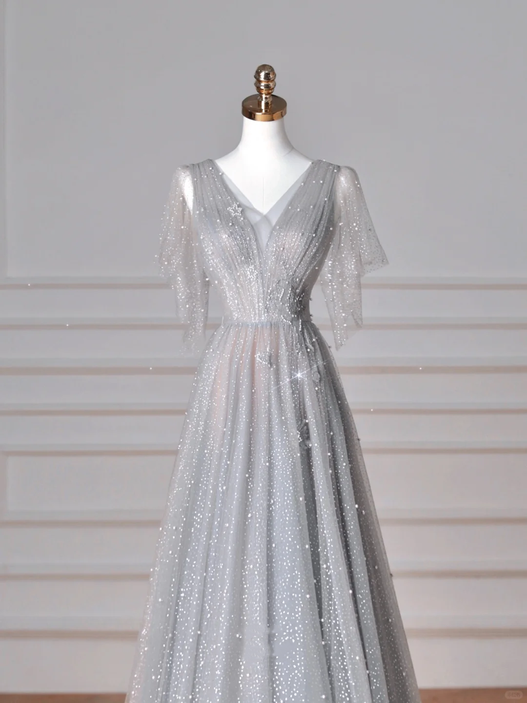 Sparkly Gray Tulle Sequins A Line Prom Dress,Sexy V Neck Evening Dress Y8638