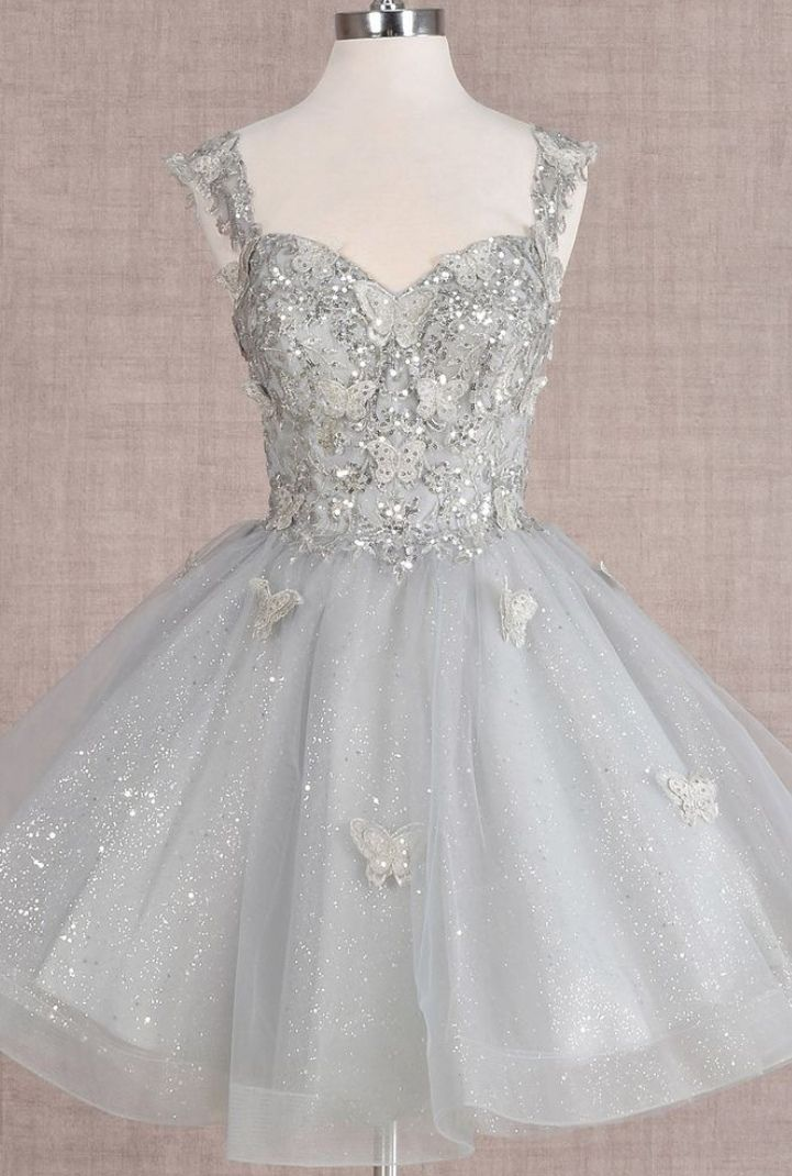 Sparkly Sweetheart Neck Tulle Sequin Butterfly Applique A Line 15th Birthday Outfits Short Homecoming Dress Y9115