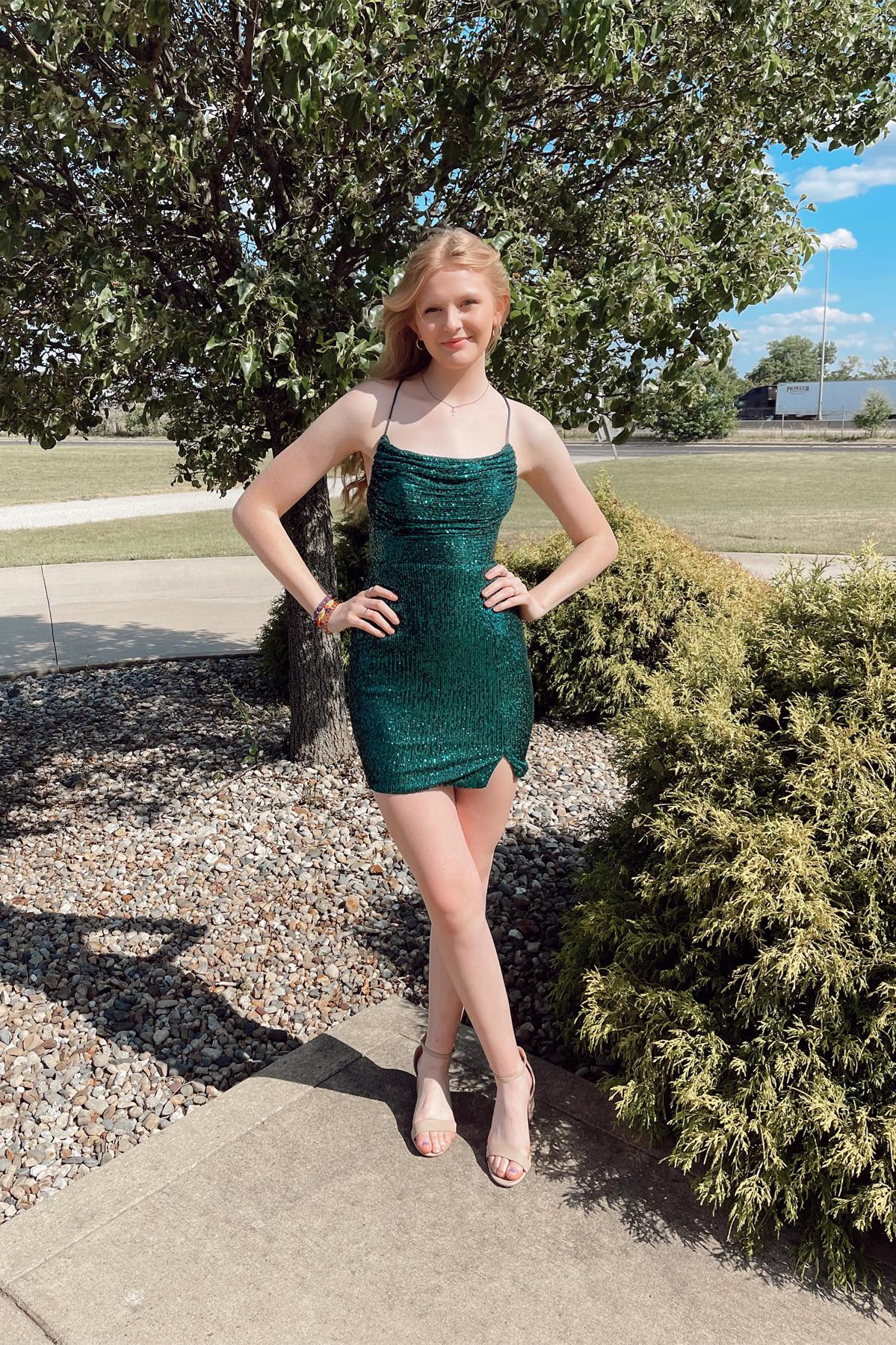 Straps Dark Green Cowl Neck Tight Mini Dress,Dark Green Homecoming Dress Y2948