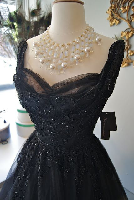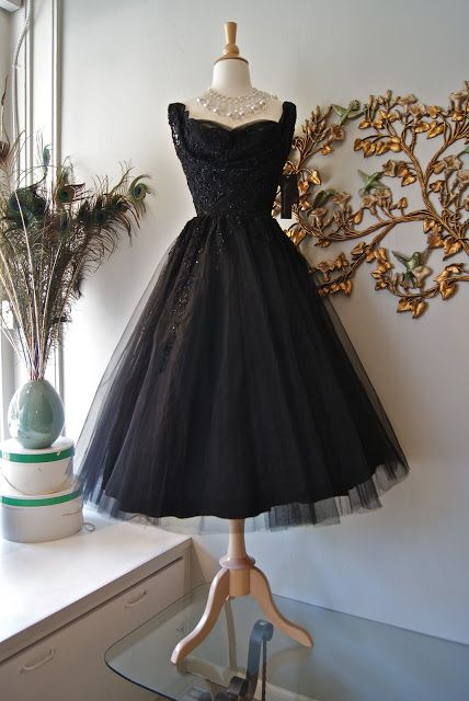 Stunning Black Vintage Midi-length Prom Dress,A-line Black Party Dress Y4750